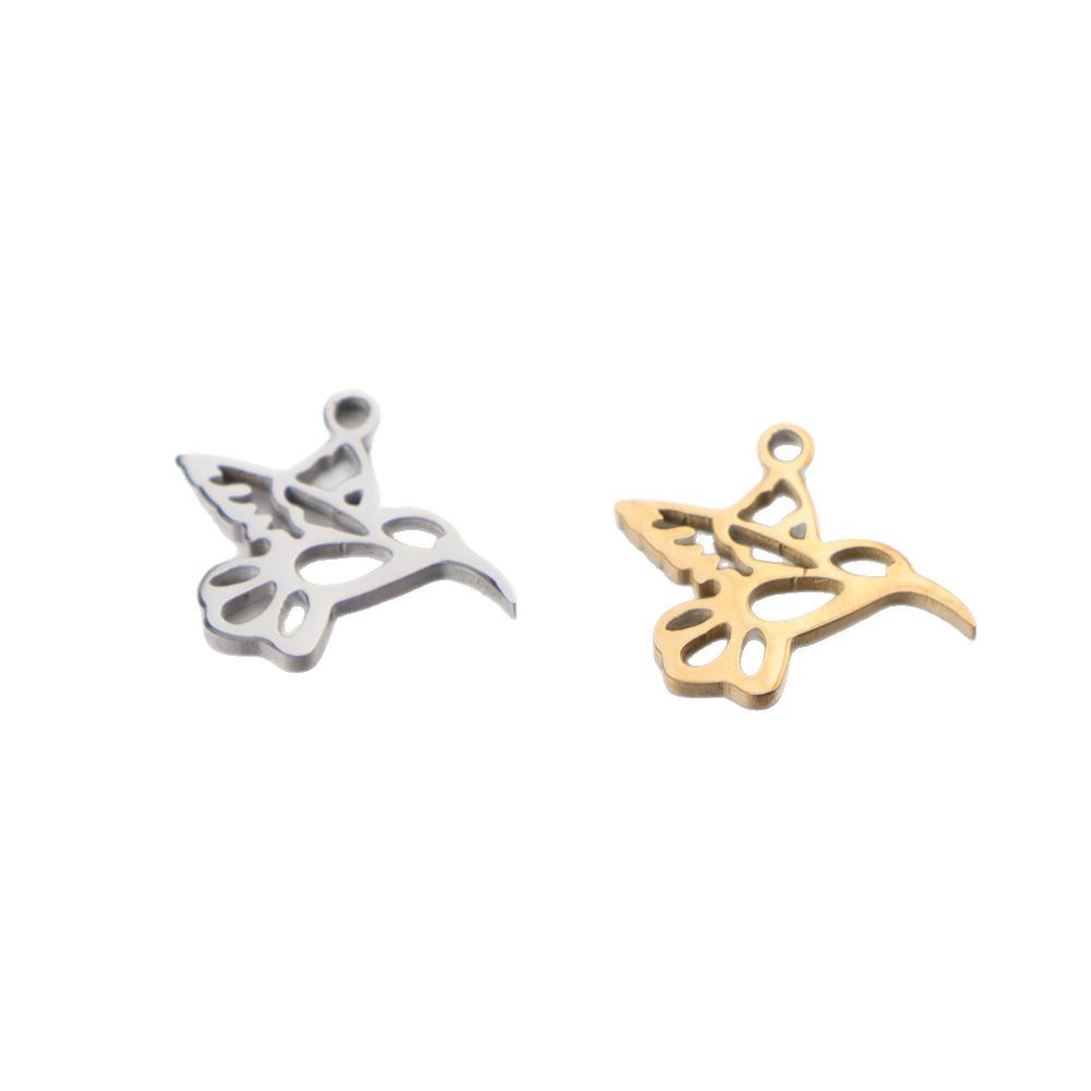 Acier inoxydable 304 Pendentif, papillon, Placage de couleur d'or, DIY & émail, plus de couleurs à choisir, protéger l'environnement, sans nickel, plomb et cadmium, 10PC/sac, Vendu par sac