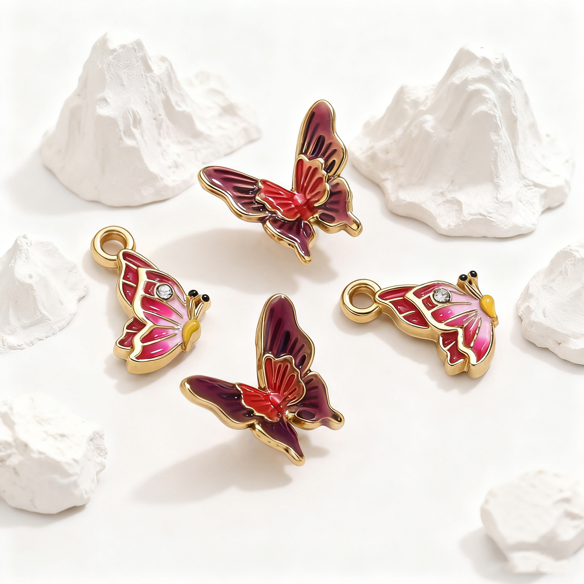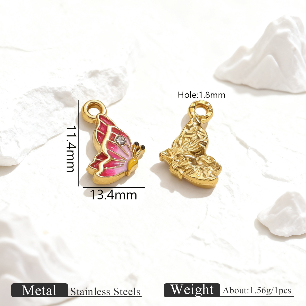 Acier inoxydable 304 Pendentif, papillon, Placage de couleur d'or, DIY & émail, plus de couleurs à choisir, protéger l'environnement, sans nickel, plomb et cadmium, 10PC/sac, Vendu par sac