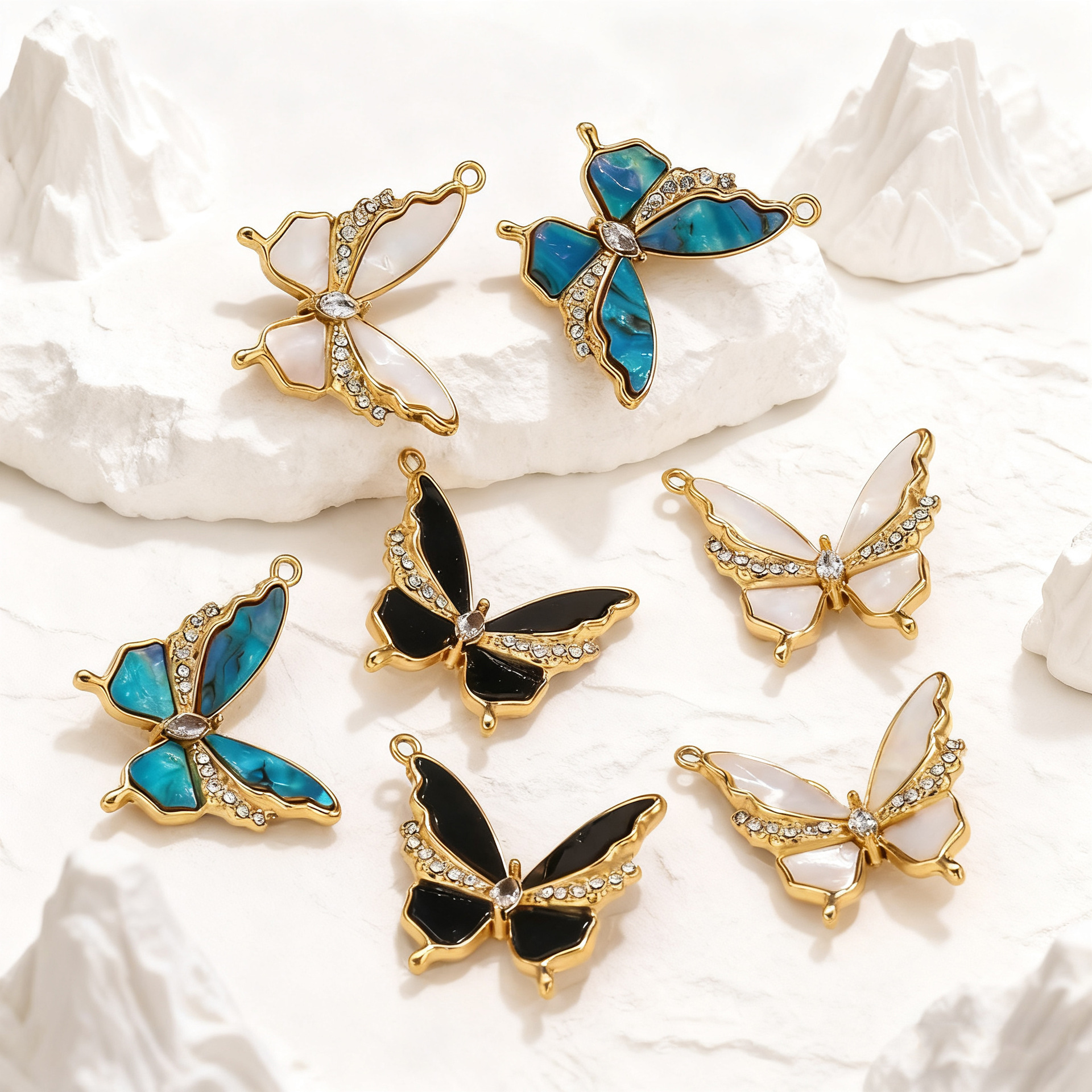 Acier inoxydable animaux Pendentifs, Acier inoxydable 304, papillon, Placage de couleur d'or, DIY & styles différents pour le choix & émail & avec strass, 5PC/sac, Vendu par sac