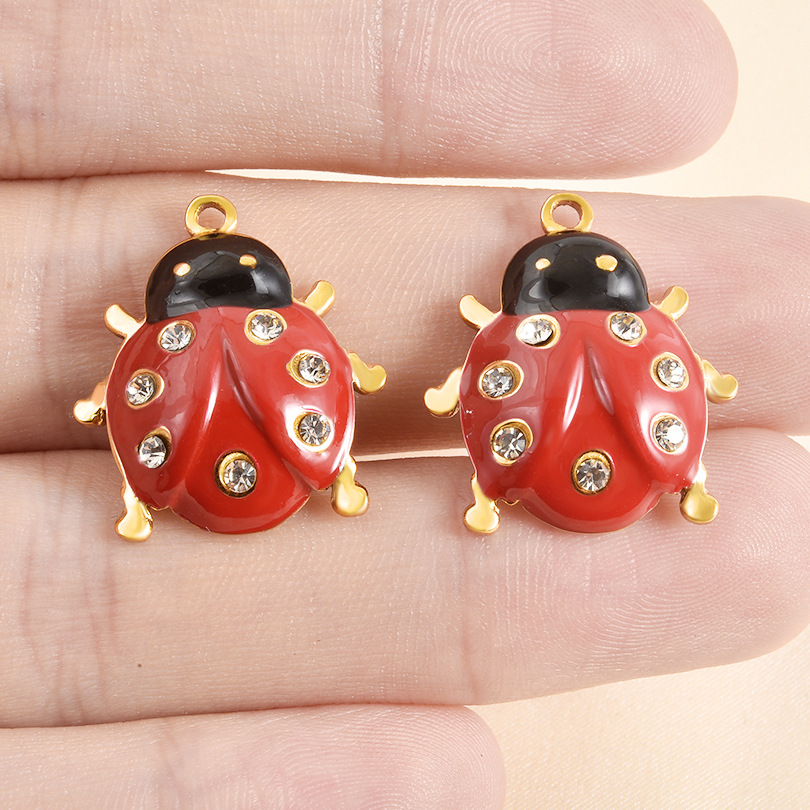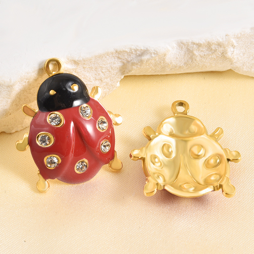Acier inoxydable animaux Pendentifs, Acier inoxydable 304, Insecte, Placage de couleur d'or, DIY & émail & avec strass, plus de couleurs à choisir, 10PC/sac, Vendu par sac