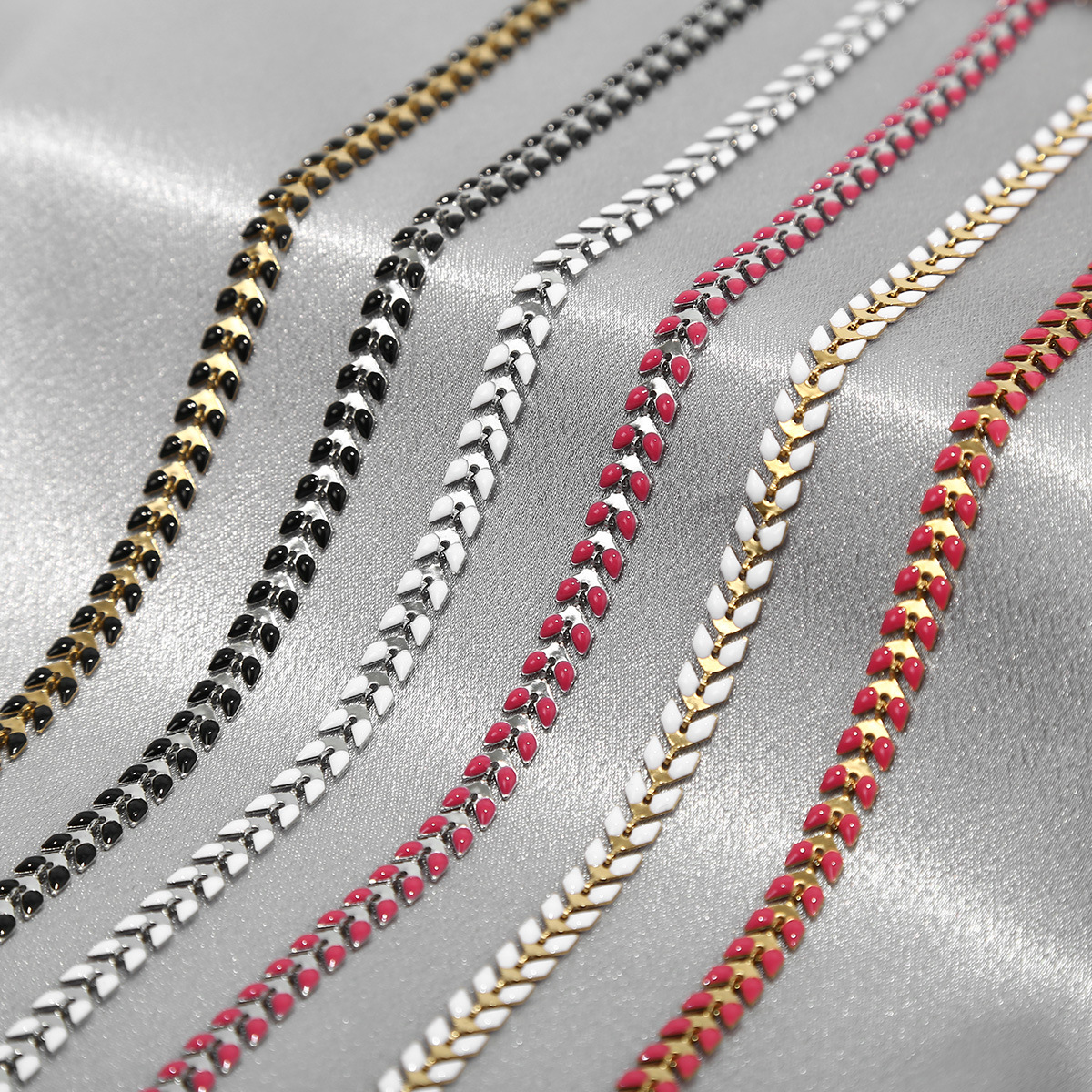 1:Golden chain—white oil drops2:Steel color chain - white dripping oil3:Golden chain - black dripping oil4:Steel color chain-black dripping oil5:Golden chain—rose red dripping oil6:Steel color chain—rose red dripping oil