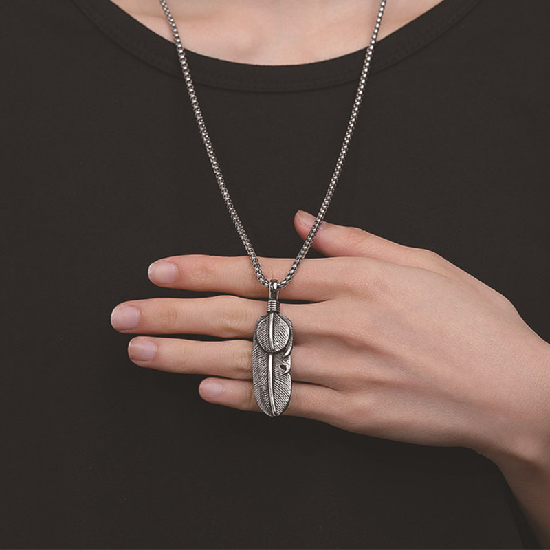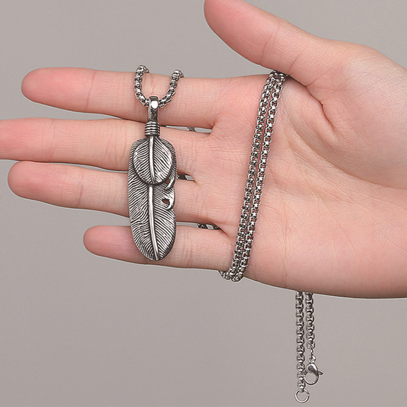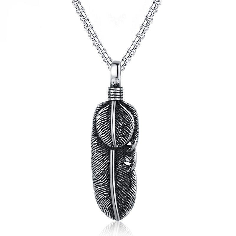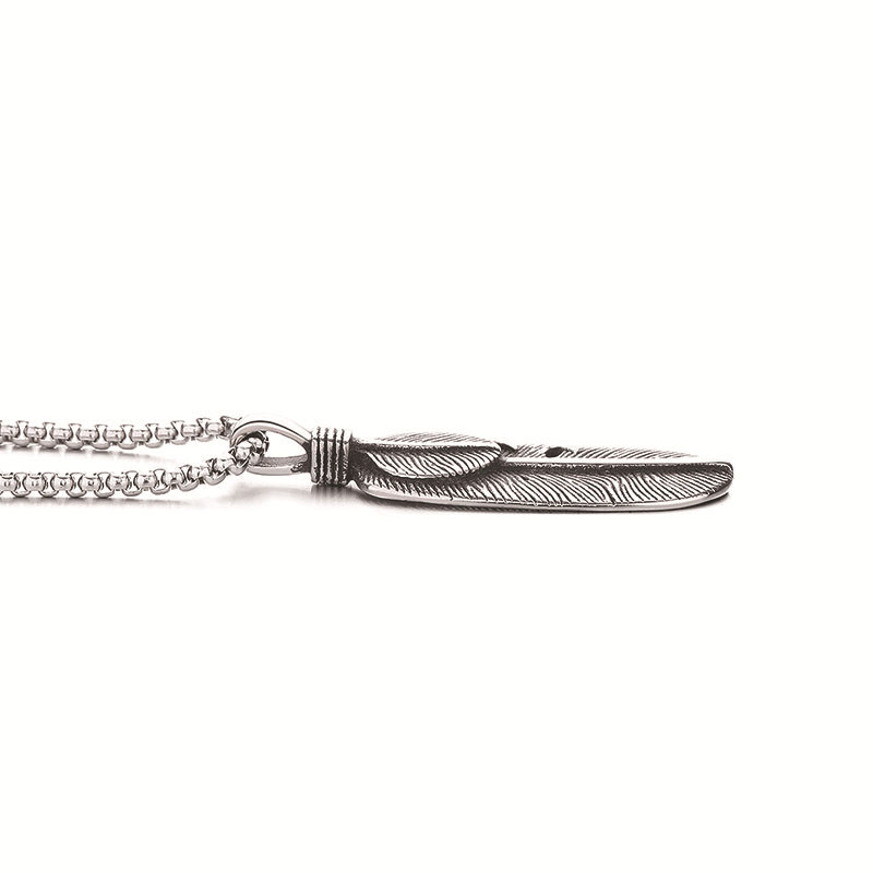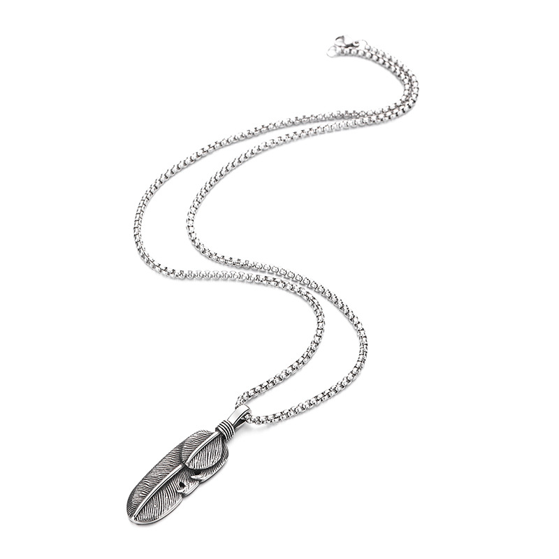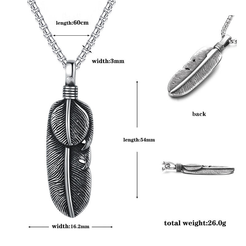 Acier titane collier, forme de plume, Vintage & pour homme, couleur originale, Longueur Environ 23.6 pouce, Vendu par PC