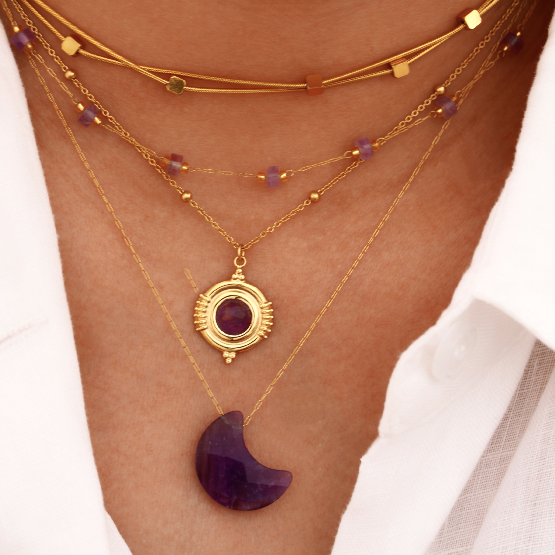 1:Hand beads2:Amethyst moon3:Amethyst 14:Amethyst 25:Double layer small square