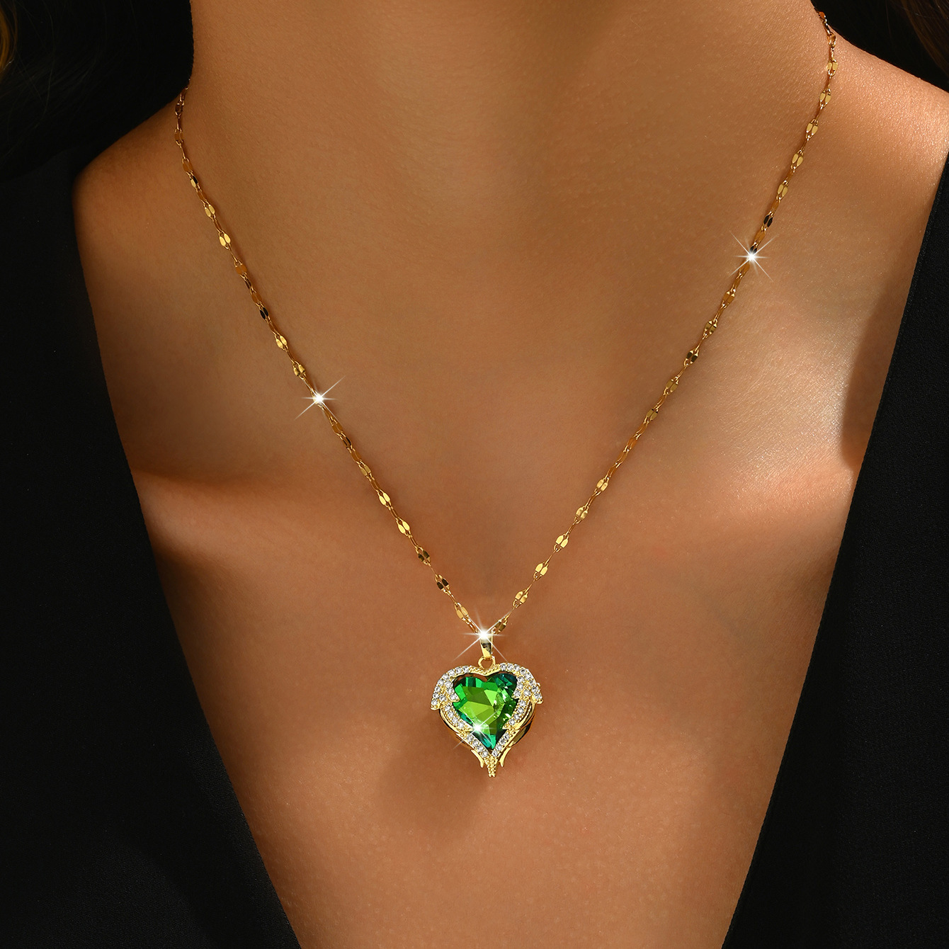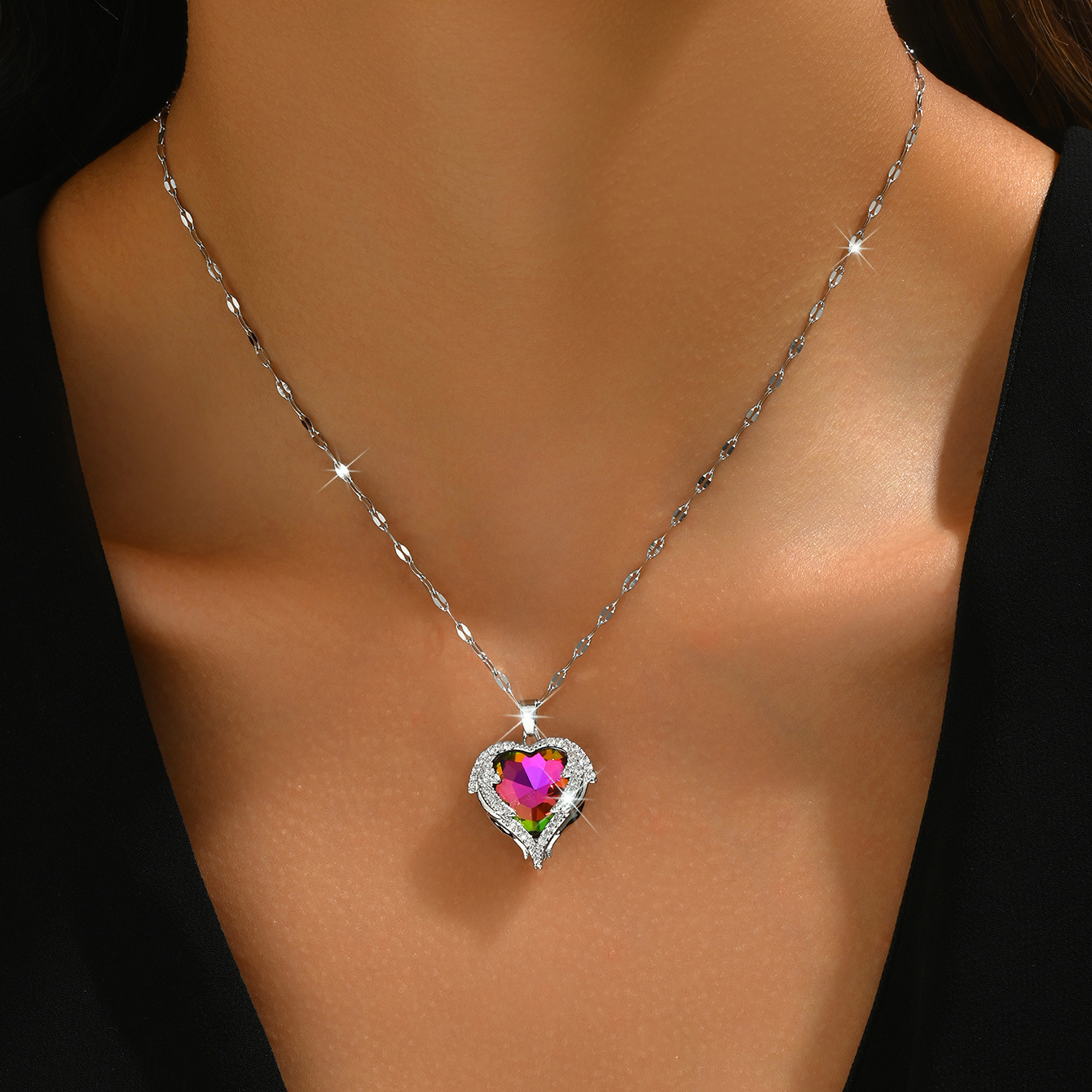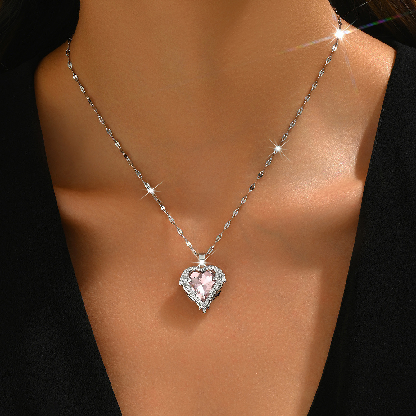 Acier titane collier, coeur, Placage, styles différents pour le choix & pour femme & avec strass, Longueur Environ 15.4 pouce, Vendu par PC