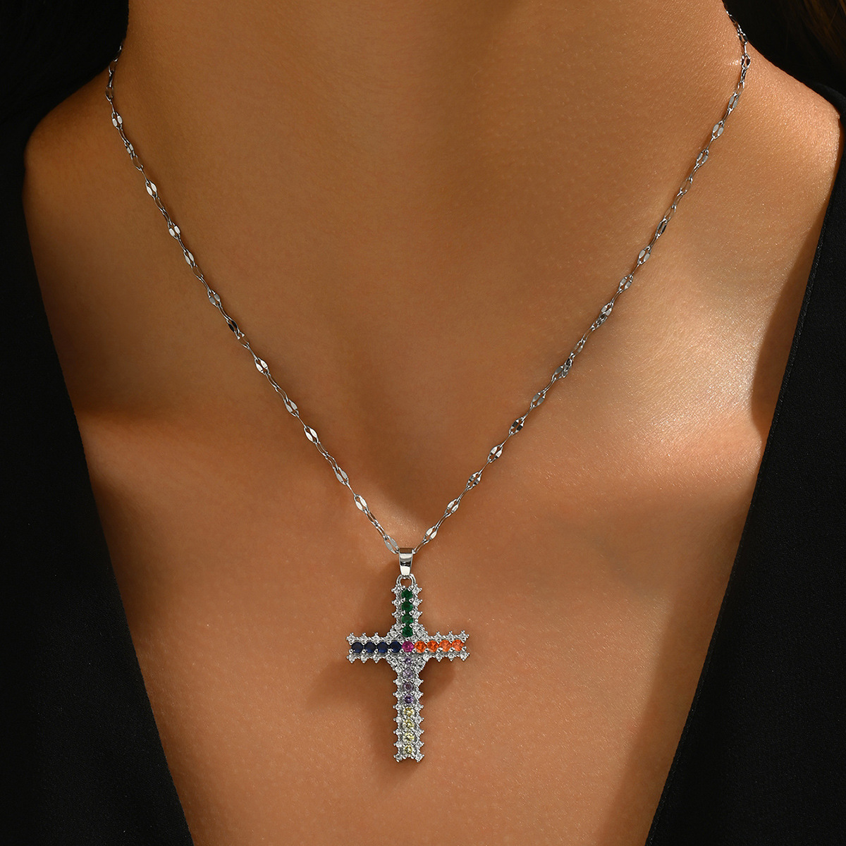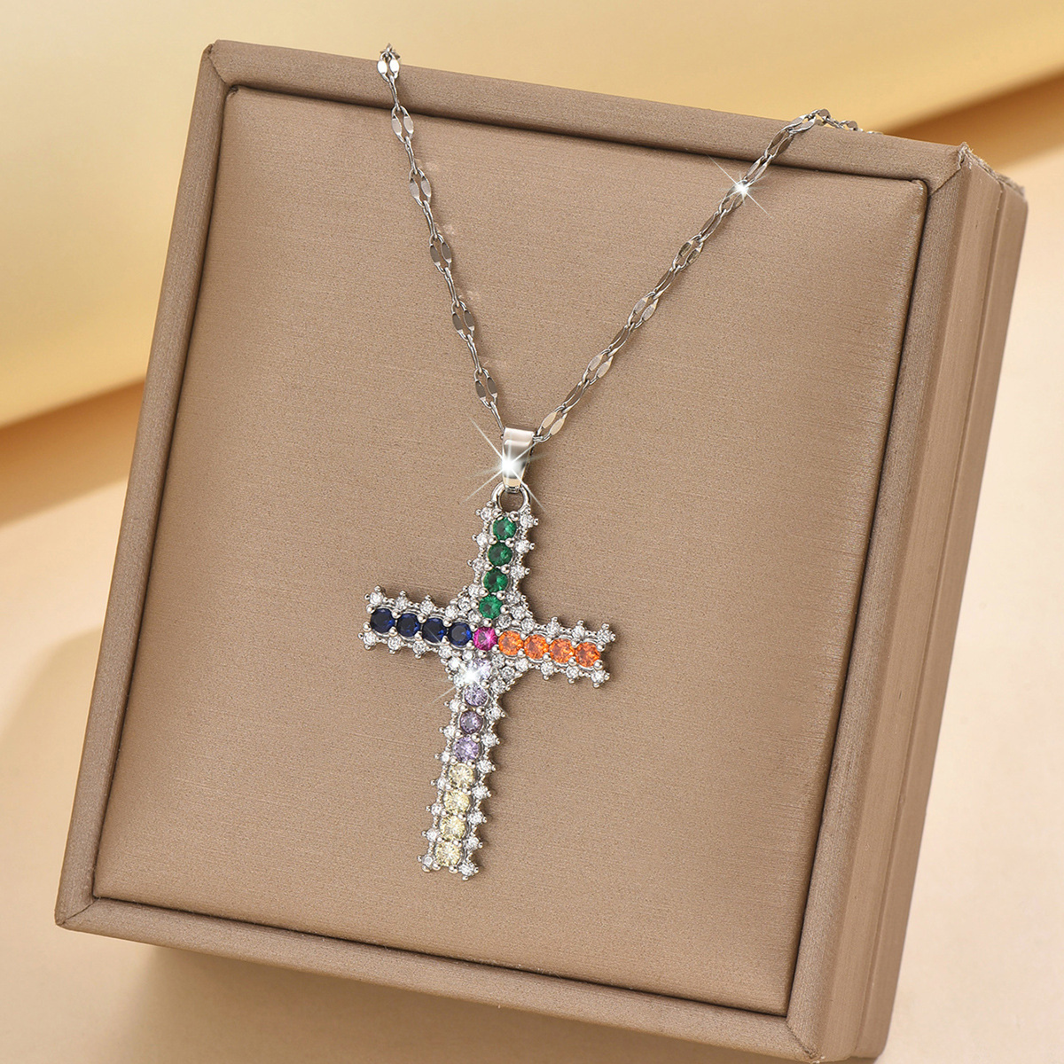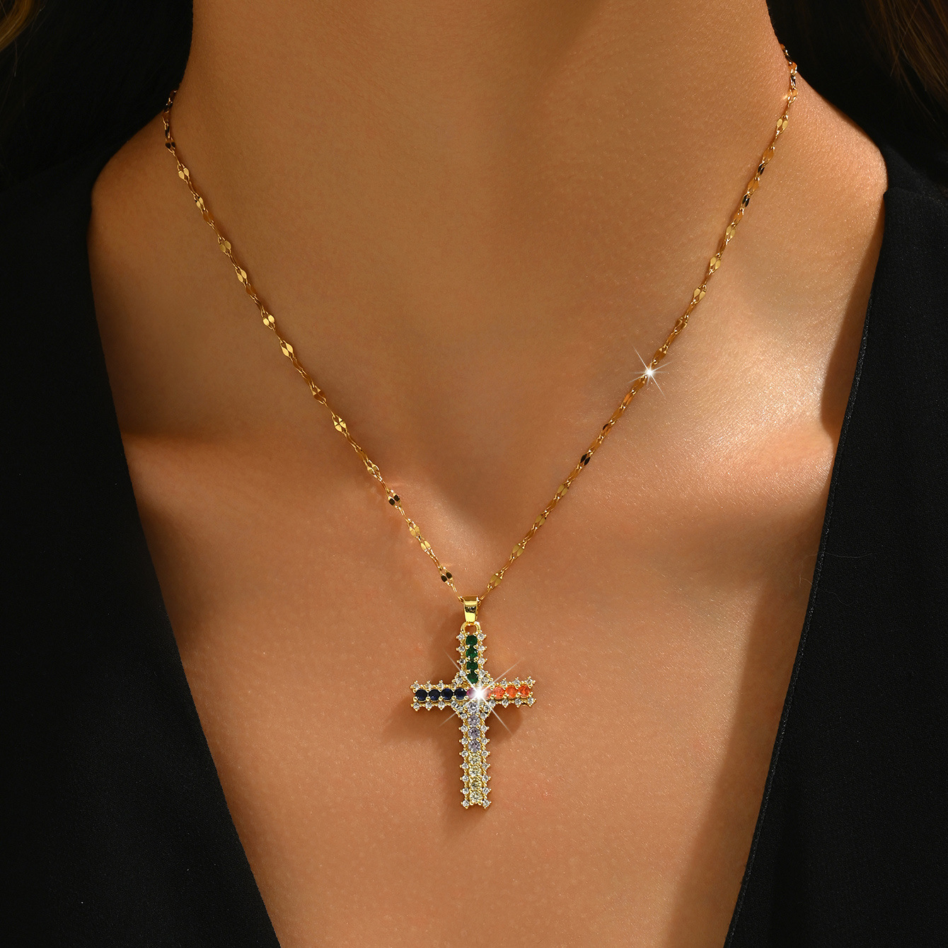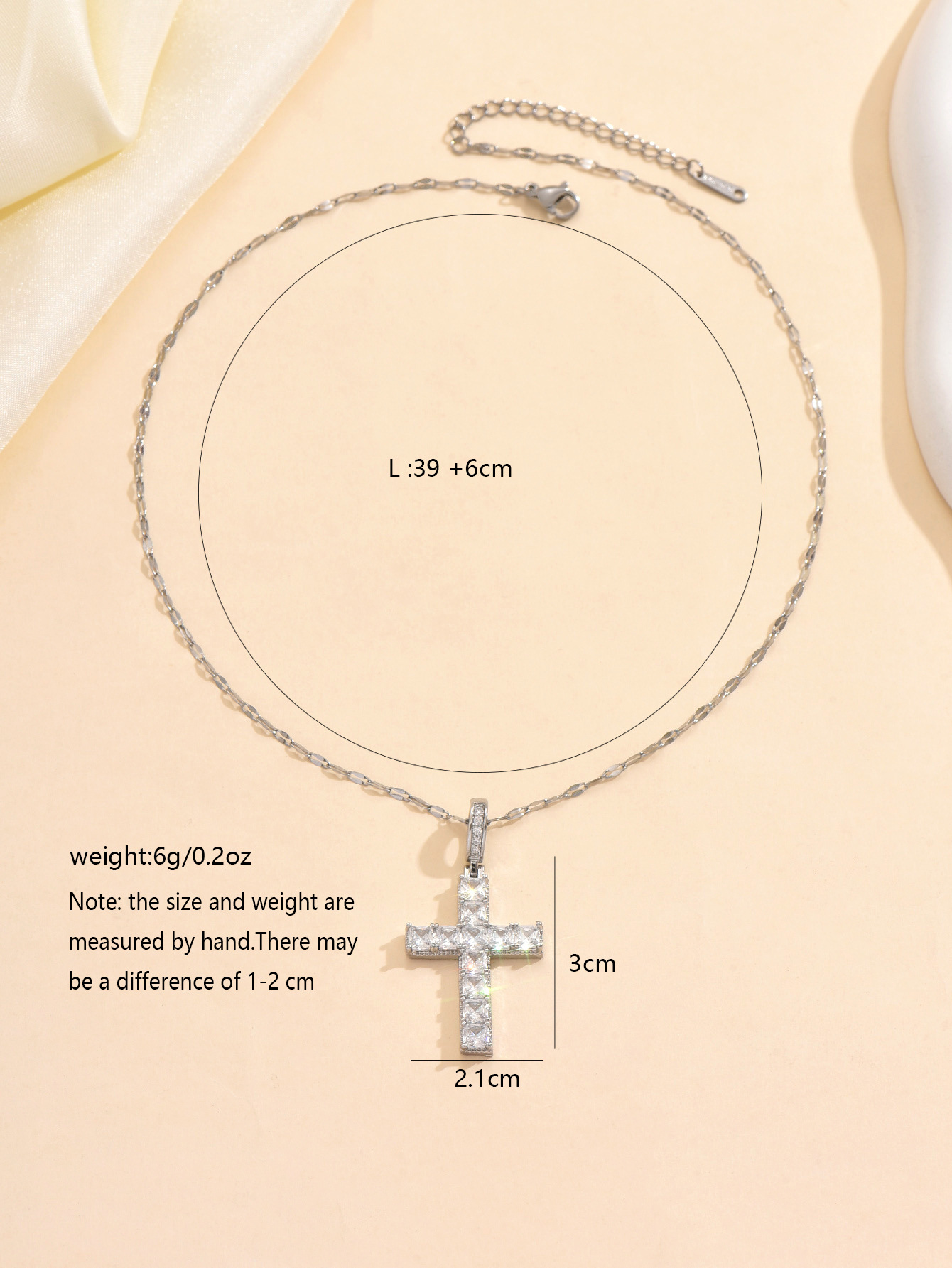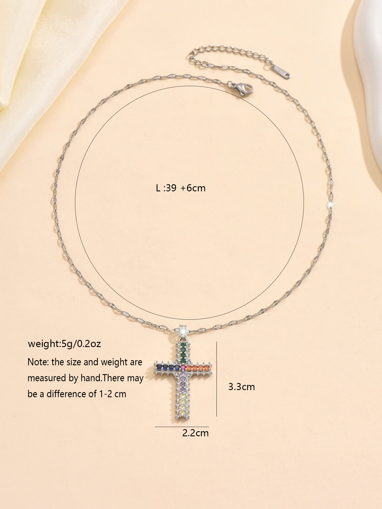 Acier titane collier, avec 2.4inch chaînes de rallonge, croix, Placage, pavé de micro zircon & pour femme, plus de couleurs à choisir, Longueur Environ 15.4 pouce, Vendu par PC