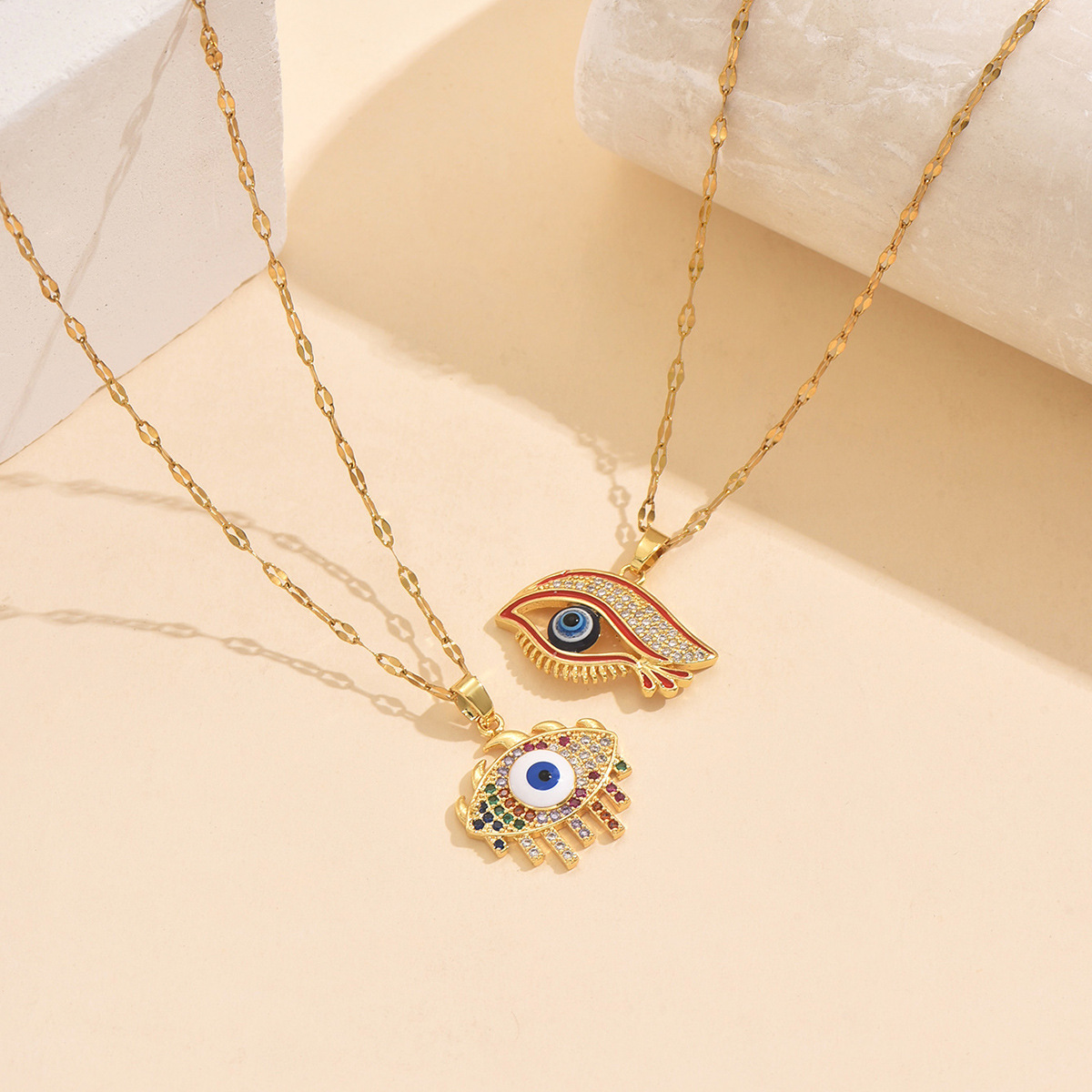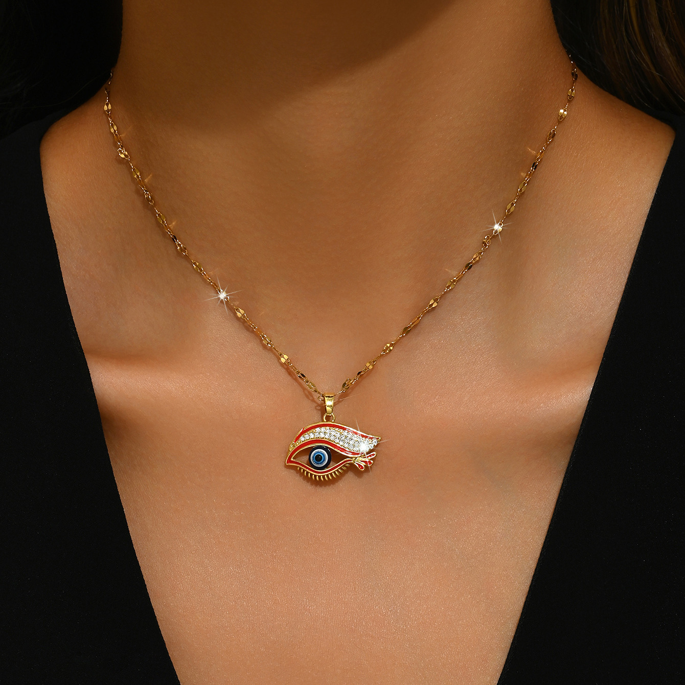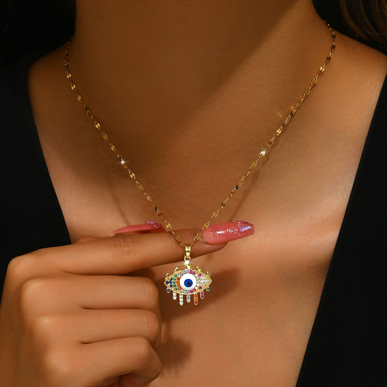 Acier titane collier, avec 2.4inch chaînes de rallonge, Mauvais œil, Placage de couleur d'or, styles différents pour le choix & pour femme & avec strass, Longueur Environ 15.4 pouce, Vendu par PC