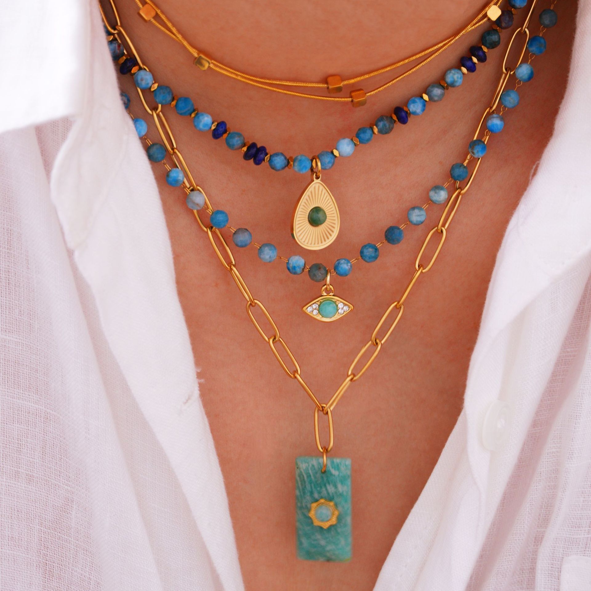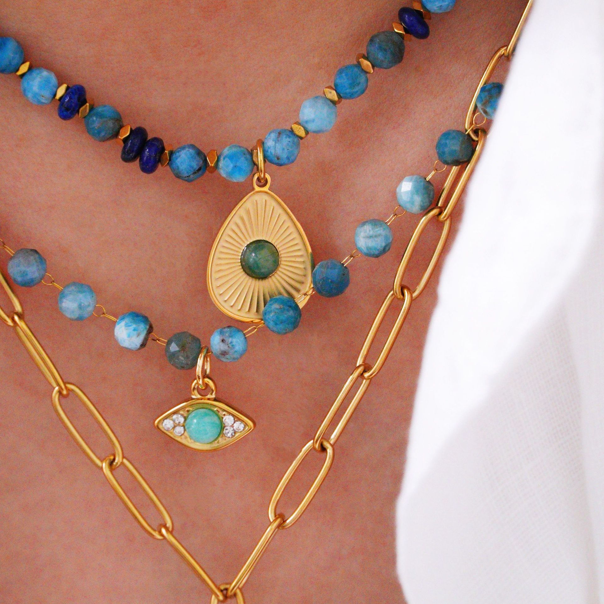Acier titane parure de bijoux, avec Amazonite, Placage de couleur d'or, styles différents pour le choix & pour femme, Vendu par PC