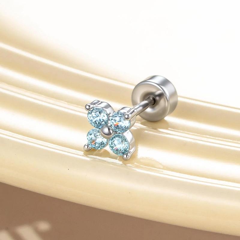 Acier titane piercing oreille, avec laiton, Placage de couleur d'or, bijoux de mode & pavé de micro zircon, bleu, Vendu par PC