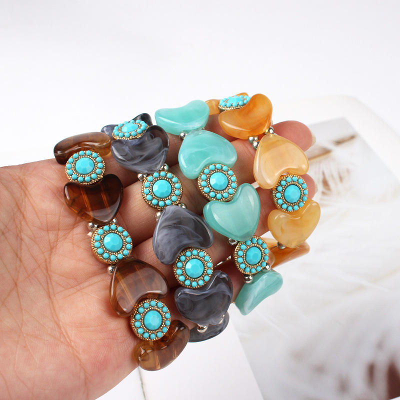 Acrylique bracelet, avec fil élastique & alliage de zinc, poli, bijoux de mode & pour femme, plus de couleurs à choisir, Longueur Environ 7.09 pouce, Vendu par PC