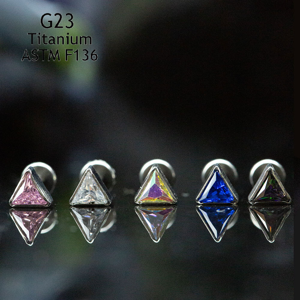 Alliage de titane Bijoux de Piercing de Nez, triangle, unisexe & normes différentes pour le choix & pavé de micro zircon, plus de couleurs à choisir, Vendu par PC