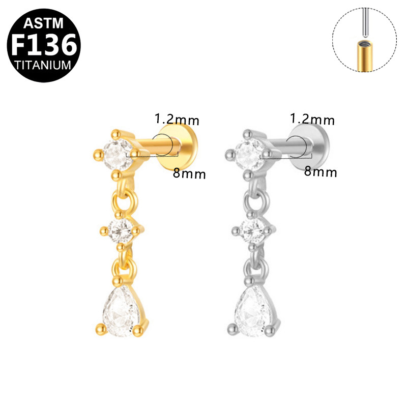 Alliage de titane piercing oreille, avec laiton, Placage, unisexe & styles différents pour le choix & pavé de micro zircon, Vendu par PC