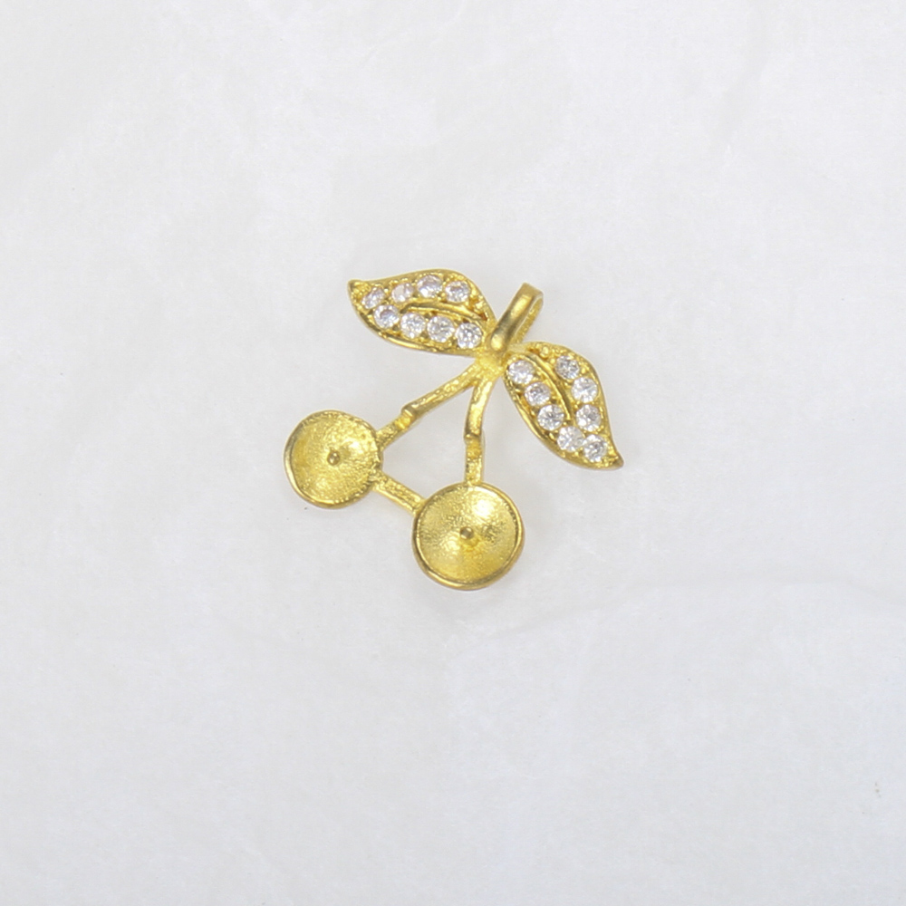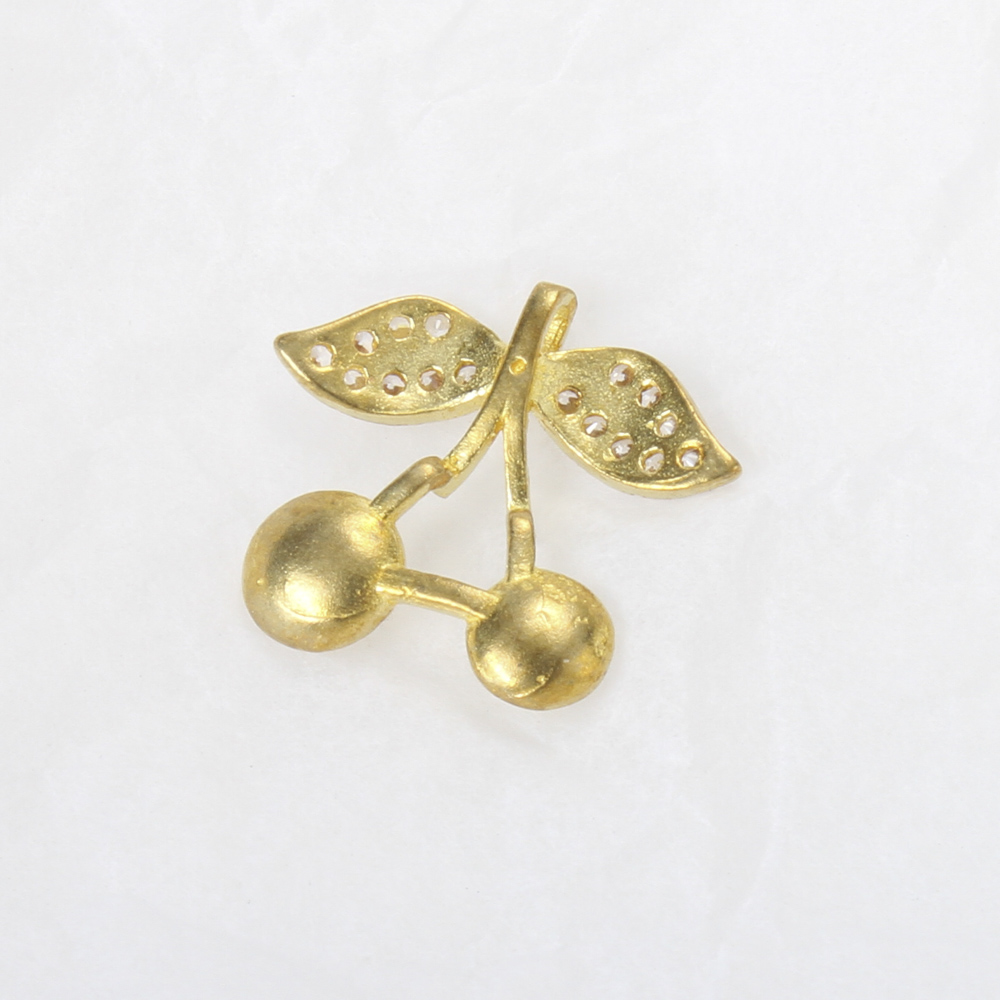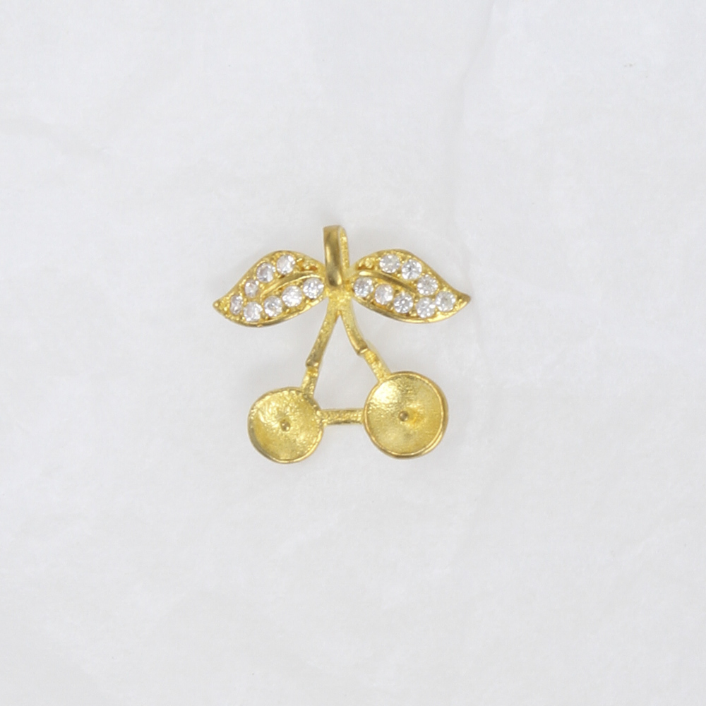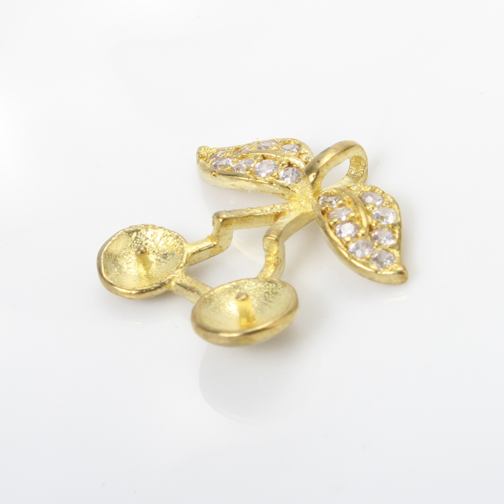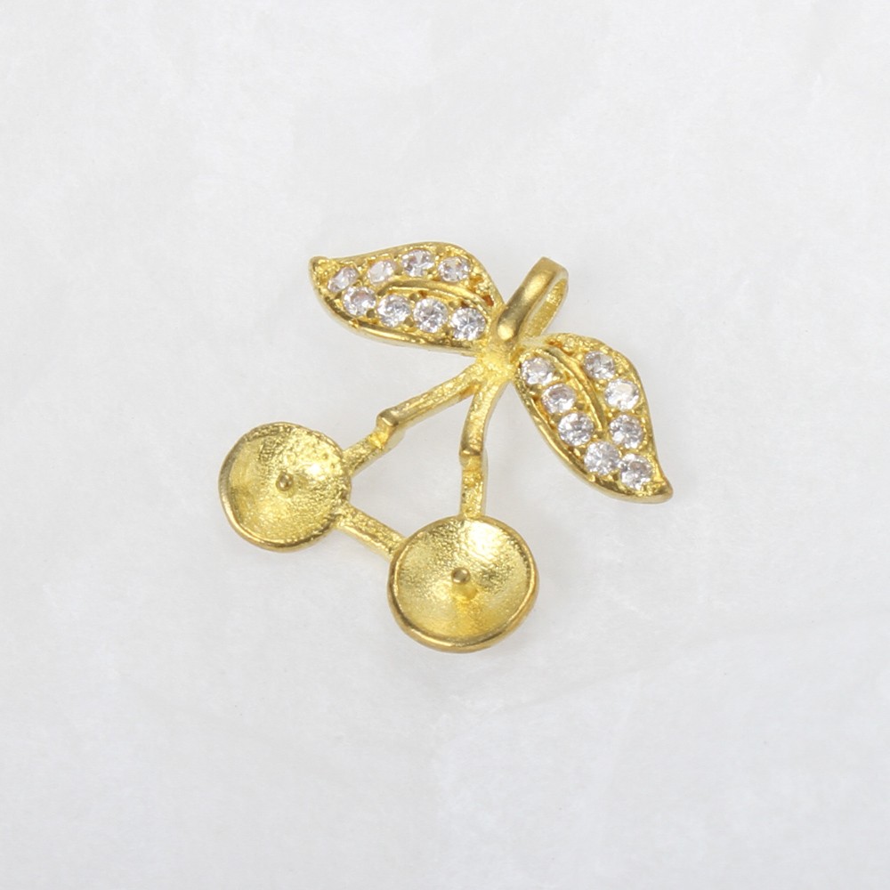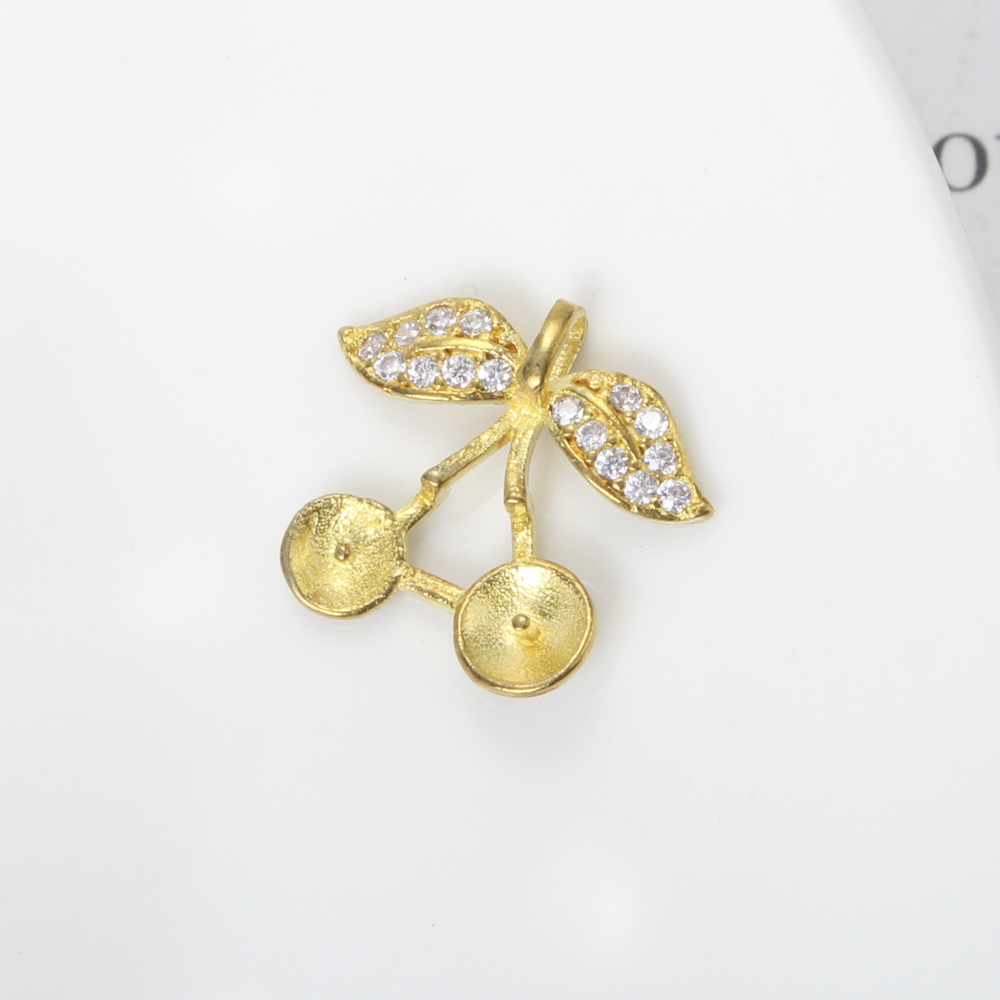 Apprêts pendentifs en laiton, cerise, Placage, DIY & avec strass, doré, protéger l'environnement, sans nickel, plomb et cadmium, 14.50x16x2.40mm, Vendu par PC