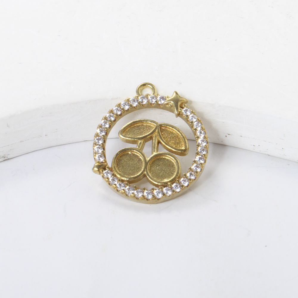 Apprêts pendentifs en laiton, Rond, Placage, DIY & avec strass & creux, doré, protéger l'environnement, sans nickel, plomb et cadmium, 18.30x15.80x2.70mm, Vendu par PC