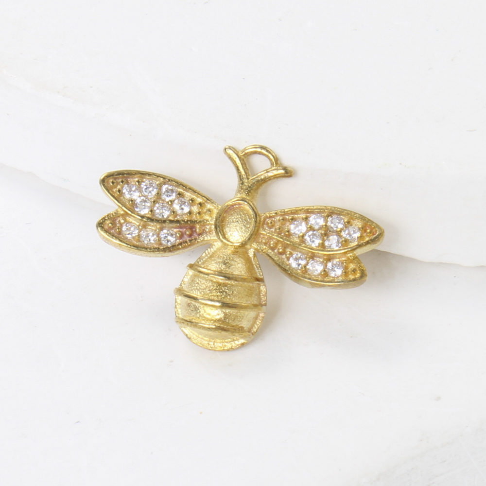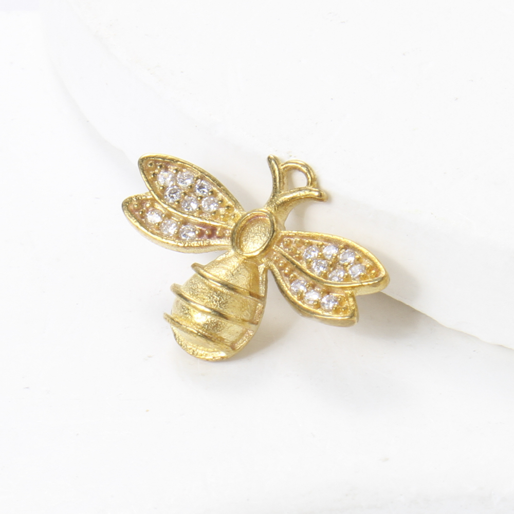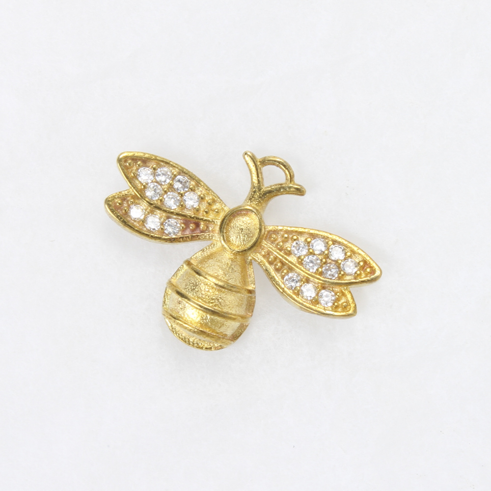 Apprêts pendentifs en laiton, abeille, Placage, DIY & avec strass, doré, protéger l'environnement, sans nickel, plomb et cadmium, 12.40x17.30x3.20mm, Vendu par PC