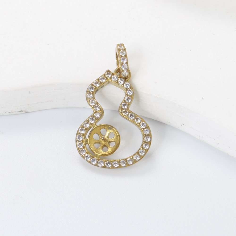 Apprêts pendentifs en laiton, calebasse, Placage, DIY & avec strass & creux, doré, protéger l'environnement, sans nickel, plomb et cadmium, 25x14.80x3.20mm, Vendu par PC