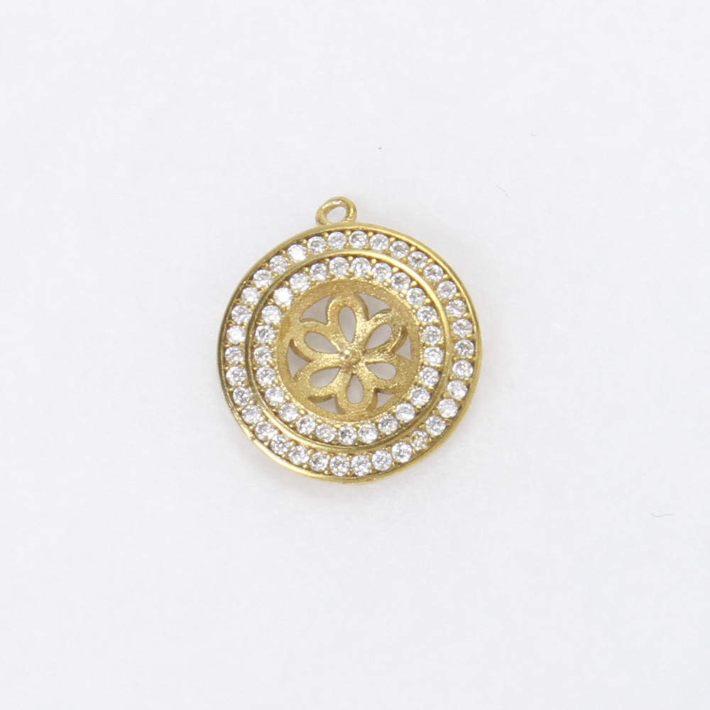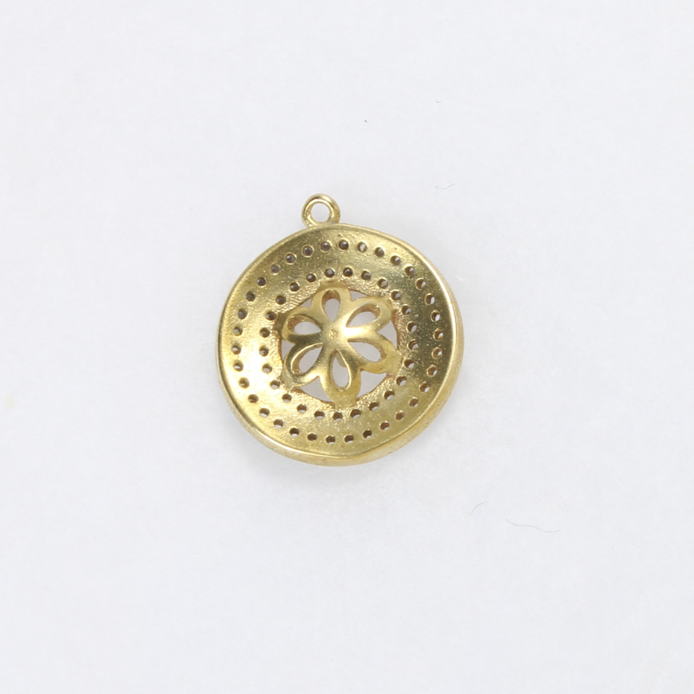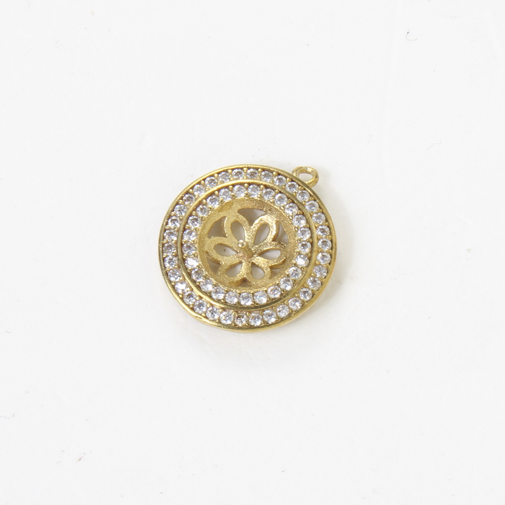 Apprêts pendentifs en laiton, Rond, Placage, DIY & avec strass, doré, protéger l'environnement, sans nickel, plomb et cadmium, 15.20x13.60x3.60mm, Vendu par PC