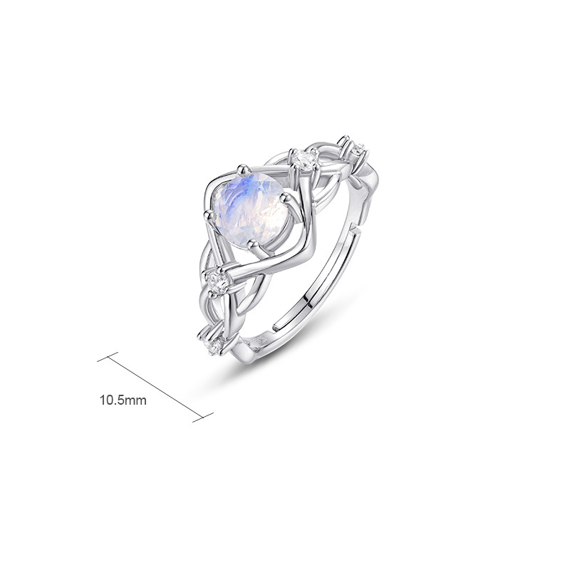 Argent sterling 925 Cuff Bague, avec Pierre de lune bleue, Motif géométrique, Plaqué de platine, pour femme & avec strass, Taille:6, Vendu par PC