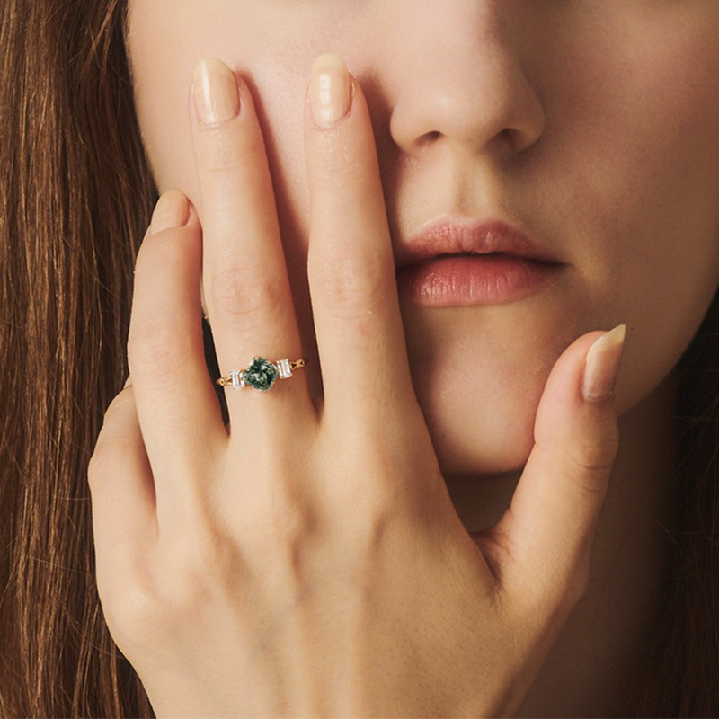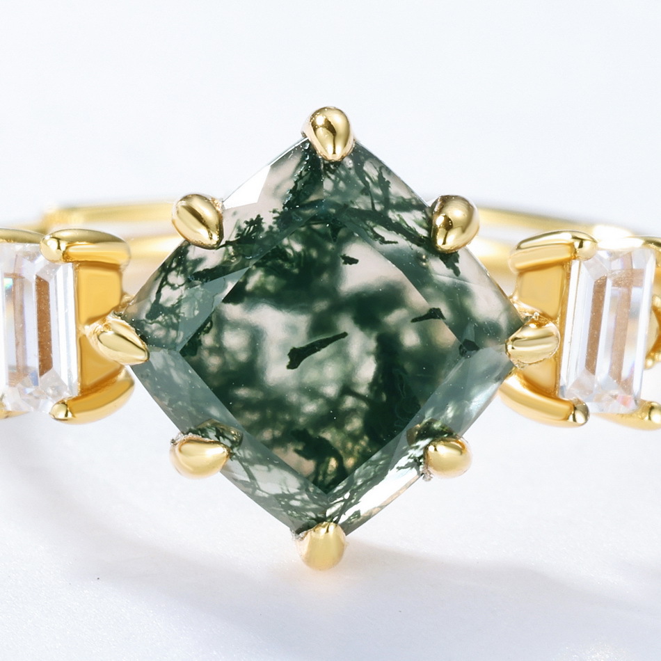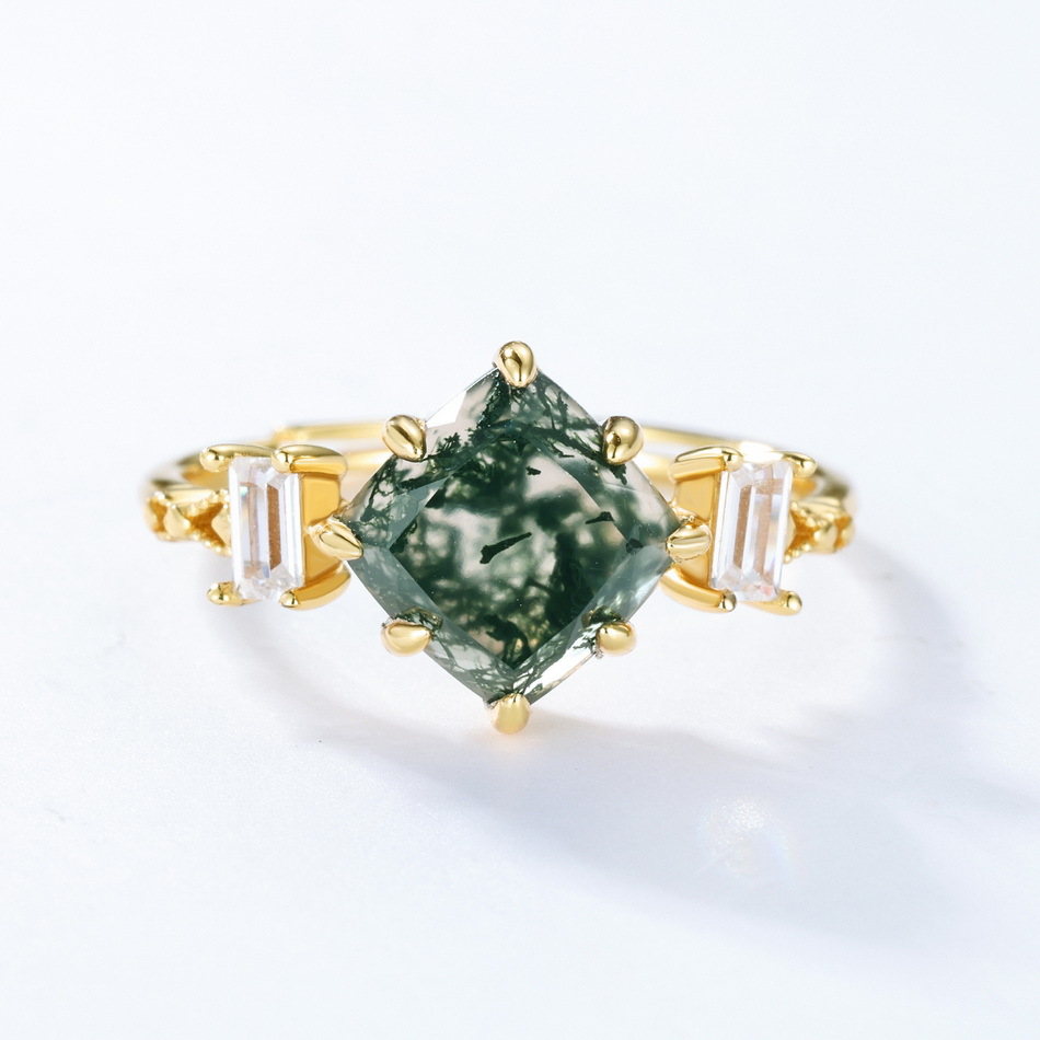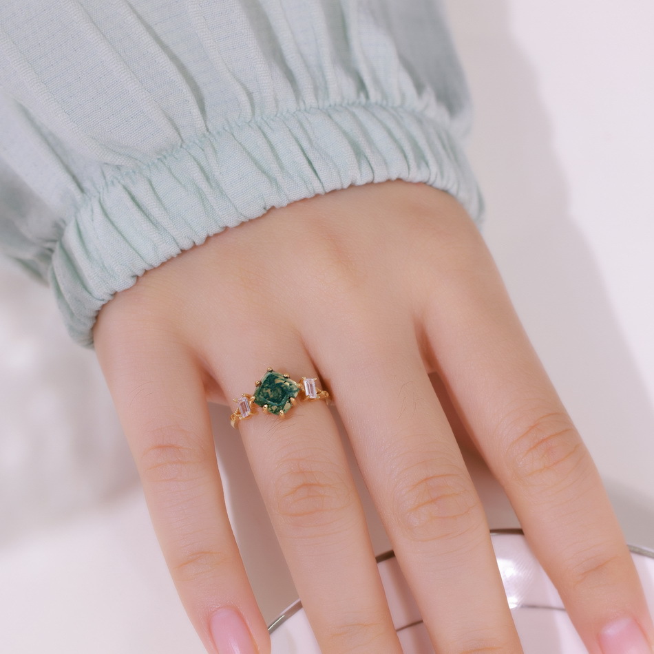Argent sterling 925 Cuff Bague, avec agate mousse, Motif géométrique, Placage de couleur d'or, pour femme & avec strass, Taille:6, Vendu par PC