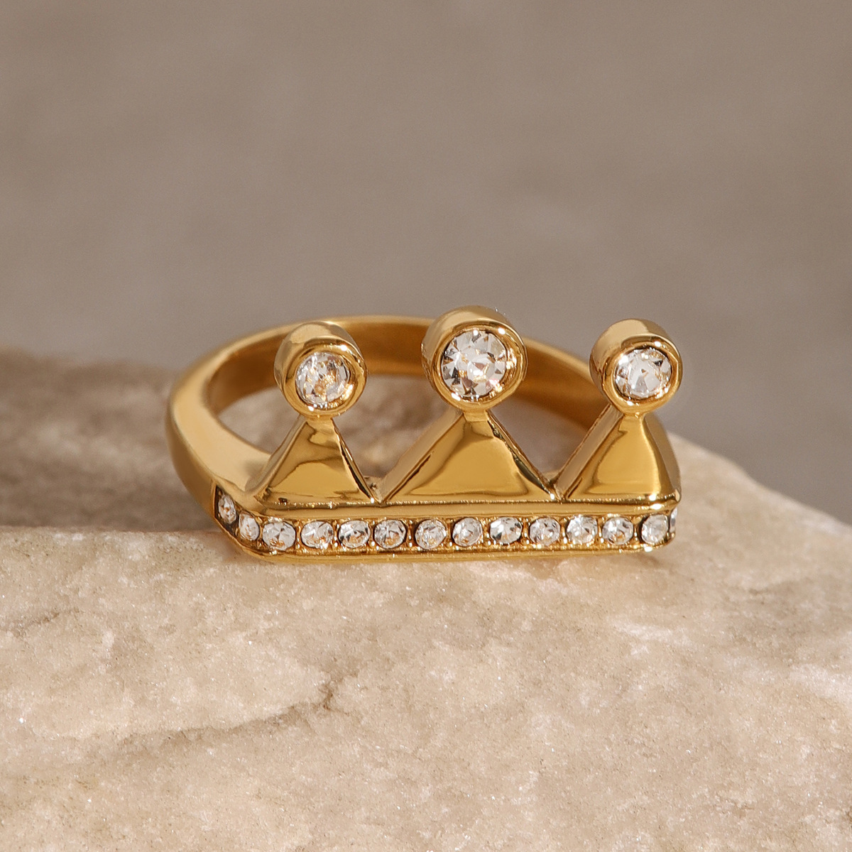 Bague en acier inoxydable zircons cubiques, Acier inoxydable 304, couronne, Placage de couleur d'or, normes différentes pour le choix & pavé de micro zircon & pour femme, Vendu par paire