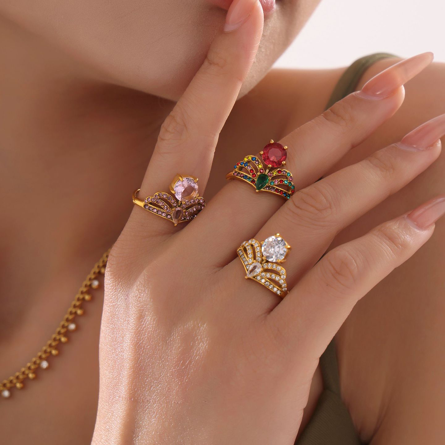 1:A974-gold white zircon ring2:A974-gold pink zircon ring3:A974-gold mixed color zircon ring4:A974-steel color white zircon ring5:A974-steel color pink zircon ring6:A974-steel color mixed color zircon ring