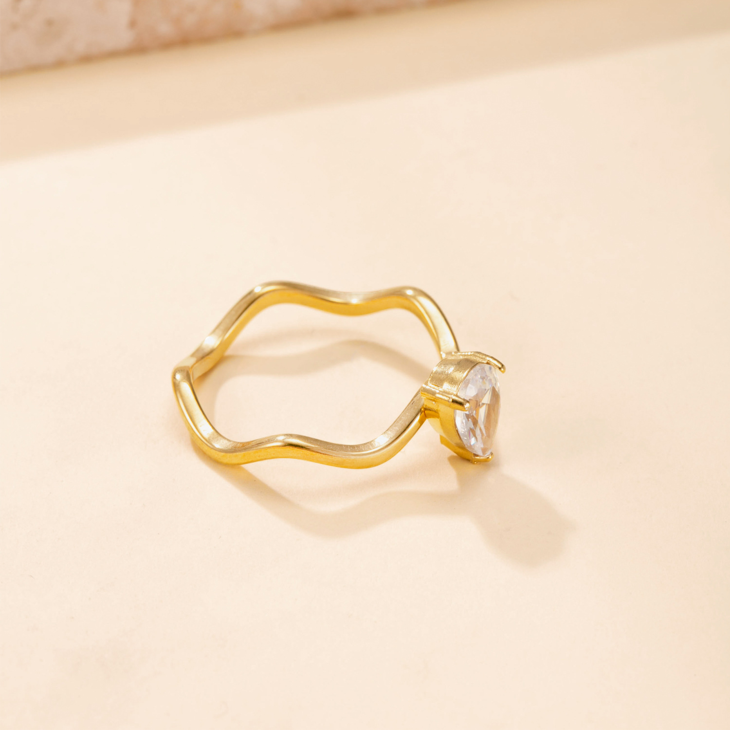 Bague en acier inoxydable zircons cubiques, Acier inoxydable 304, avec zircon cubique, Placage, bijoux de mode & pour femme, doré, Vendu par PC