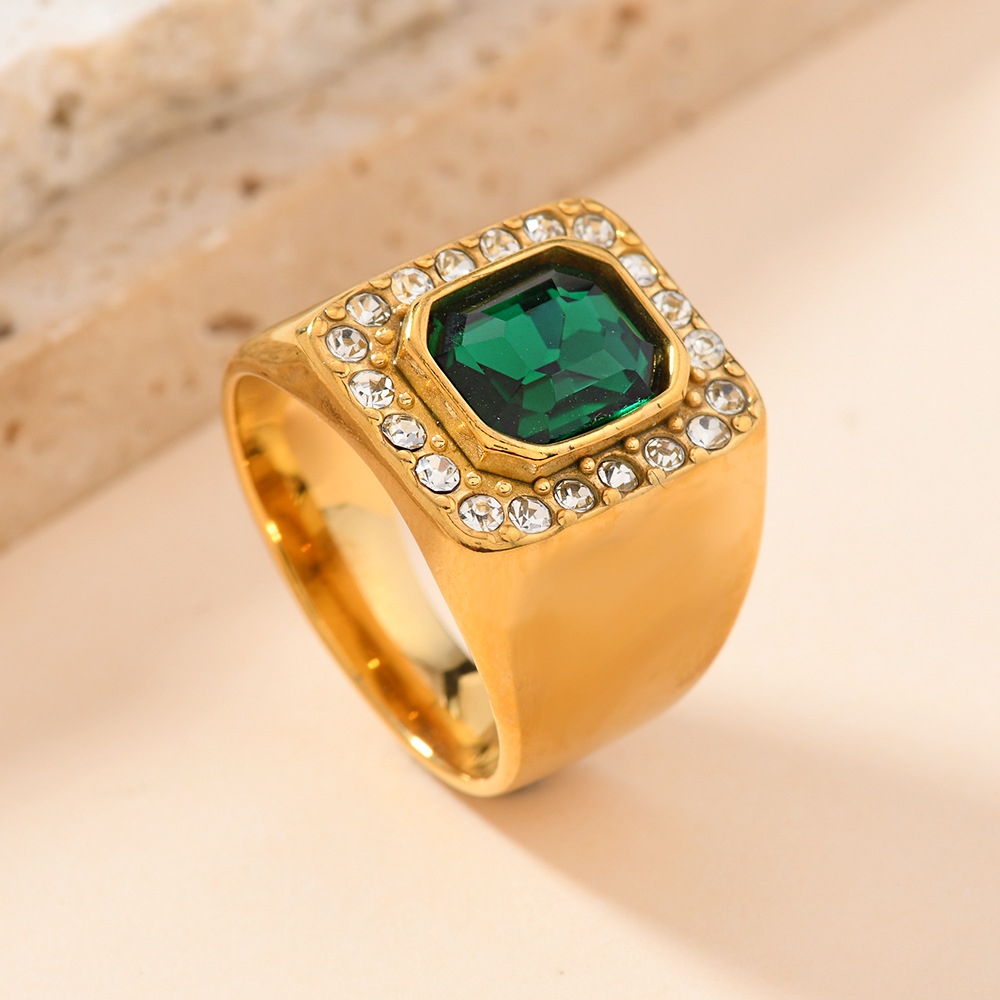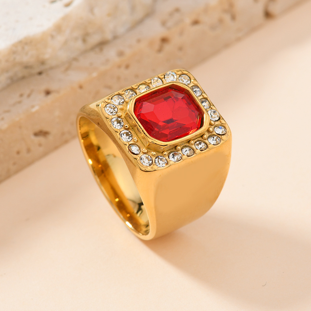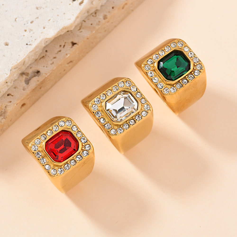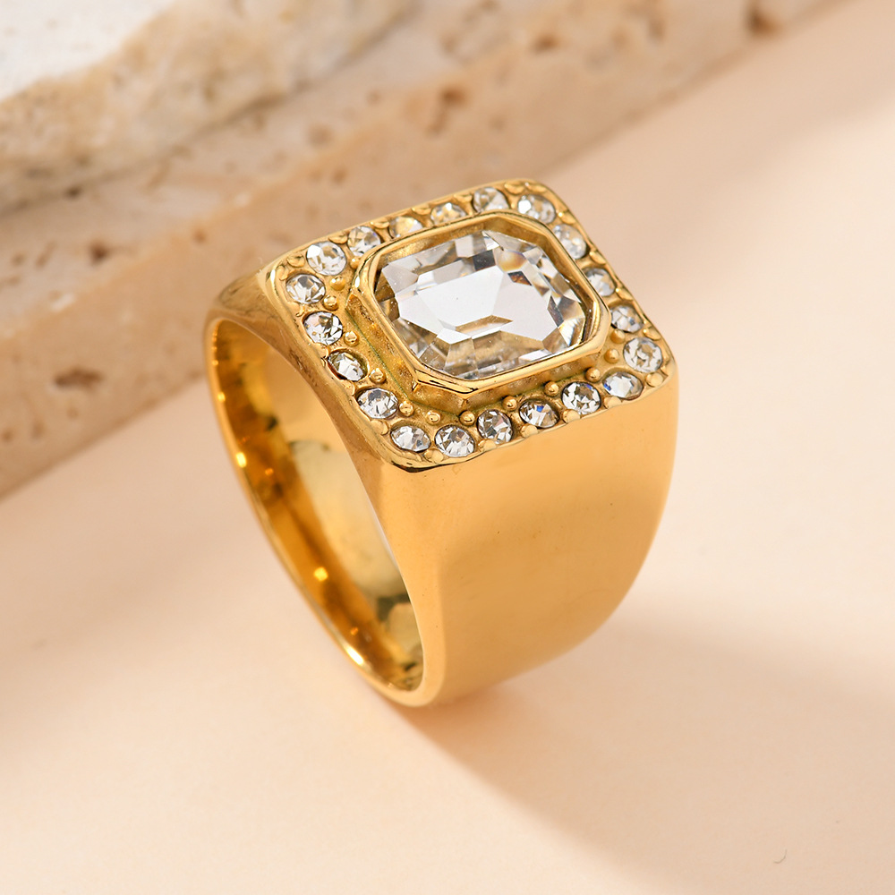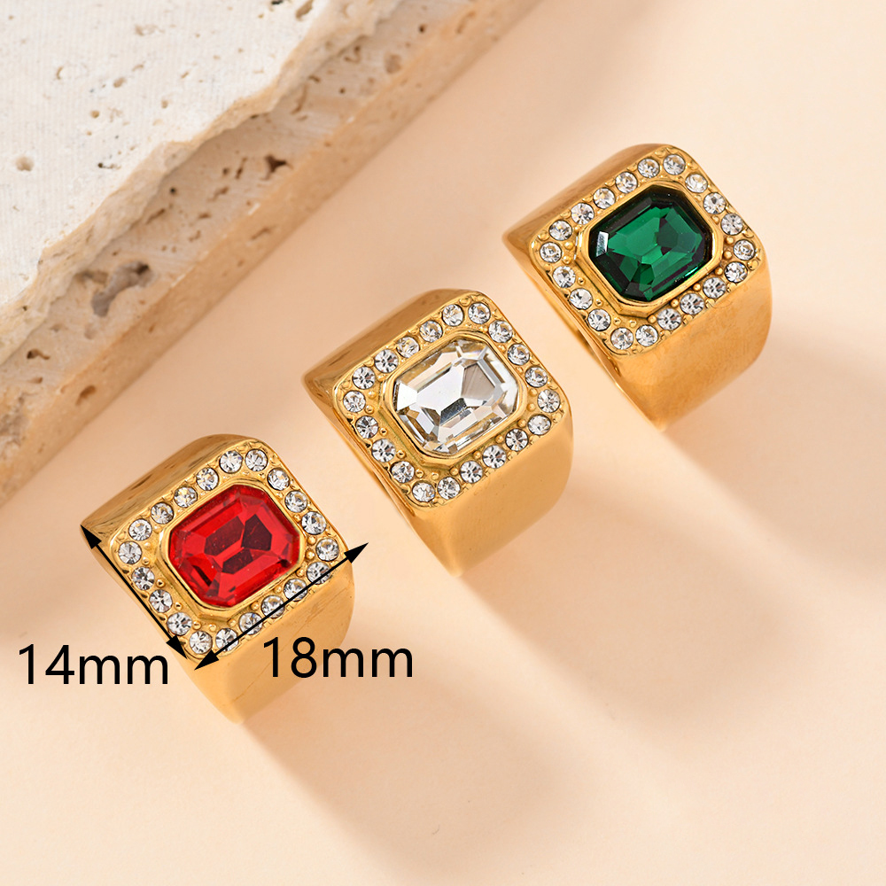 Bague en acier inoxydable zircons cubiques, Acier inoxydable 304, Placage de couleur d'or, bijoux de mode & unisexe & pavé de micro zircon, plus de couleurs à choisir, Taille:9, Vendu par PC