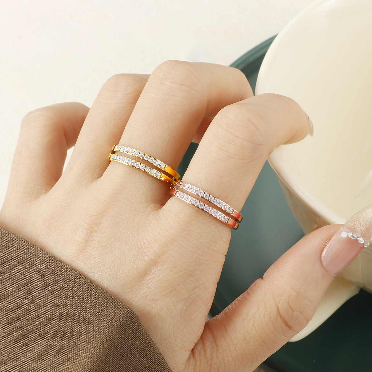 • Effet :Double couche,normes différentes pour le choix,pavé de micro zircon,pour femme