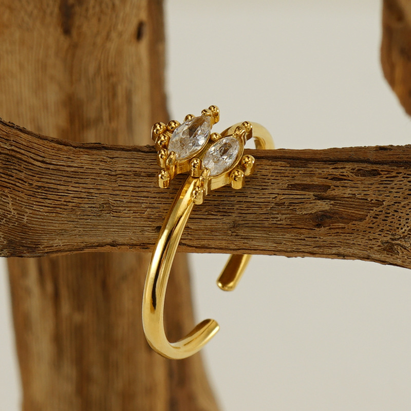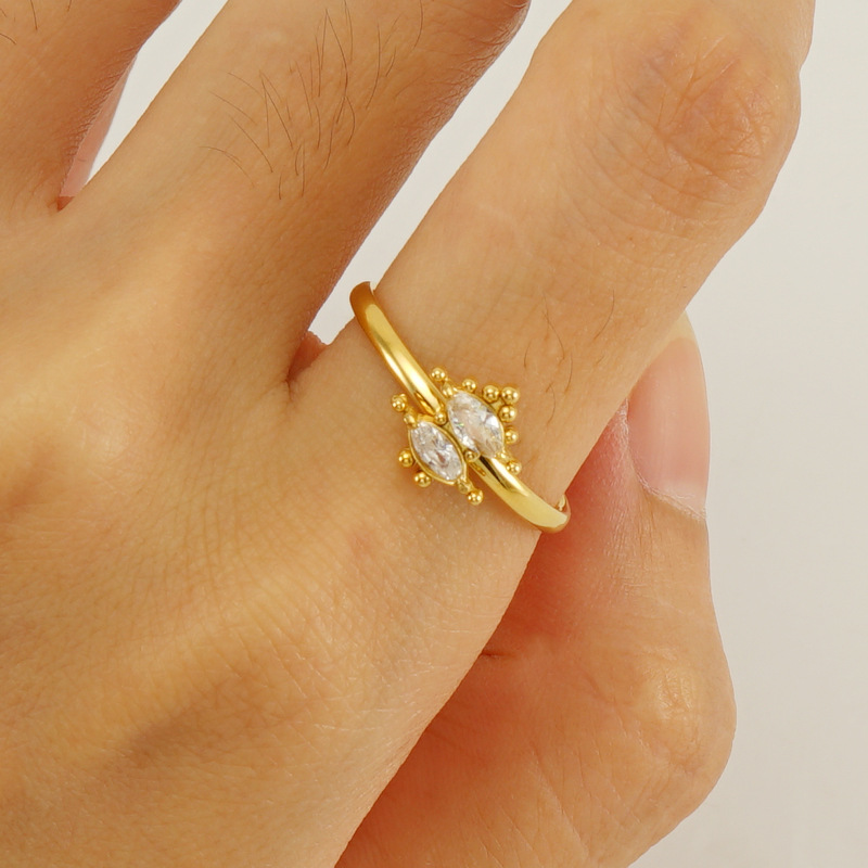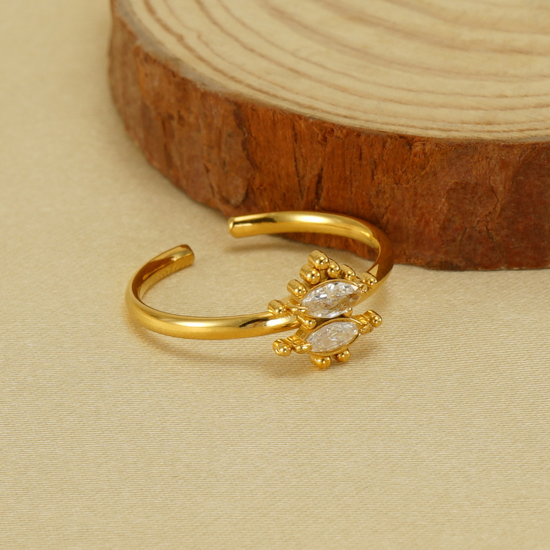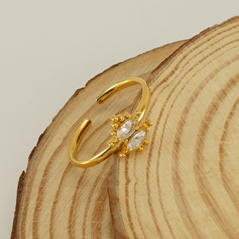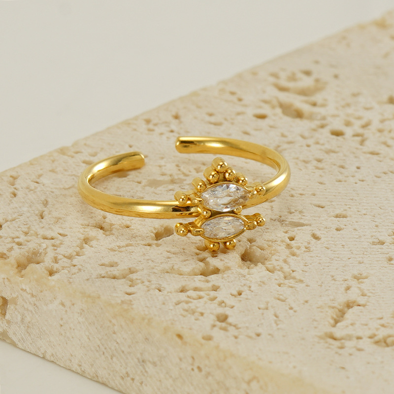 Bague en acier inoxydable zircons cubiques, Acier inoxydable 304, Plaqué or 18K, bijoux de mode & pavé de micro zircon & pour femme, Vendu par PC