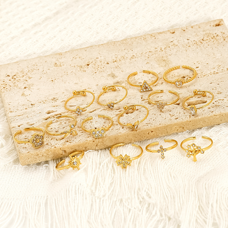 Bague en acier inoxydable zircons cubiques, Acier inoxydable 304, Plaqué or 18K, styles différents pour le choix & pavé de micro zircon & pour femme, Vendu par PC