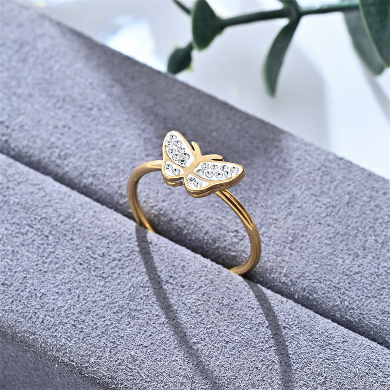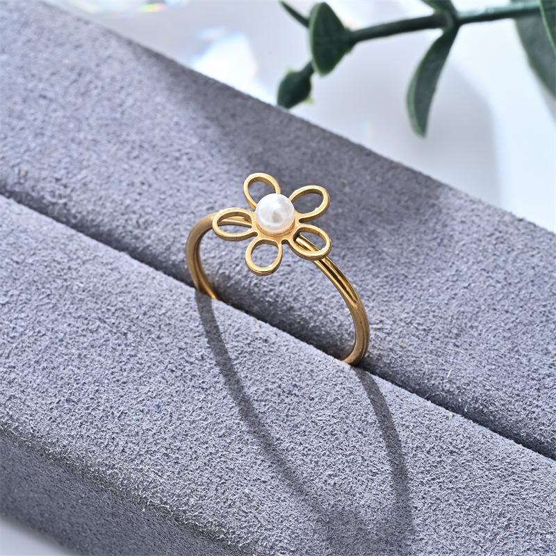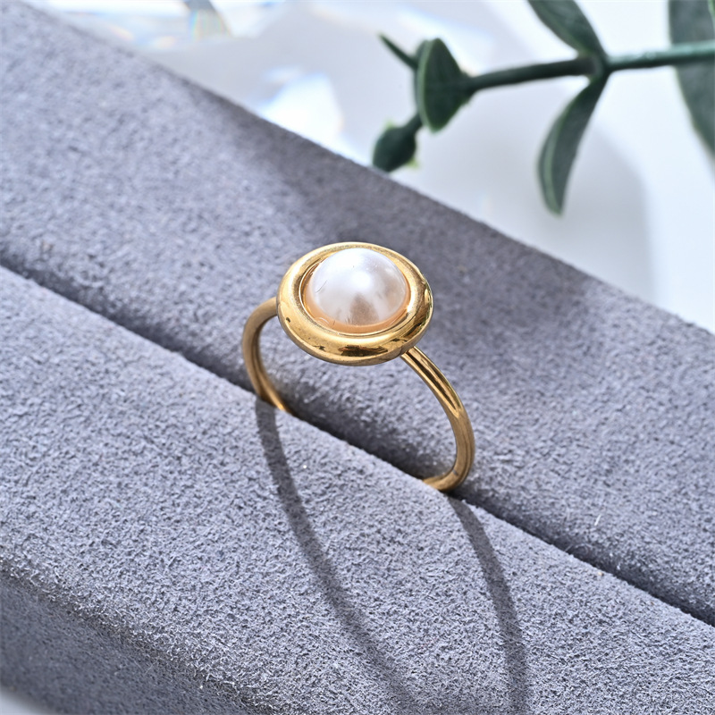Bague en acier inoxydable zircons cubiques, Acier inoxydable 304, avec perle de plastique, Placage, styles différents pour le choix & pavé de micro zircon & pour femme, doré, Vendu par PC