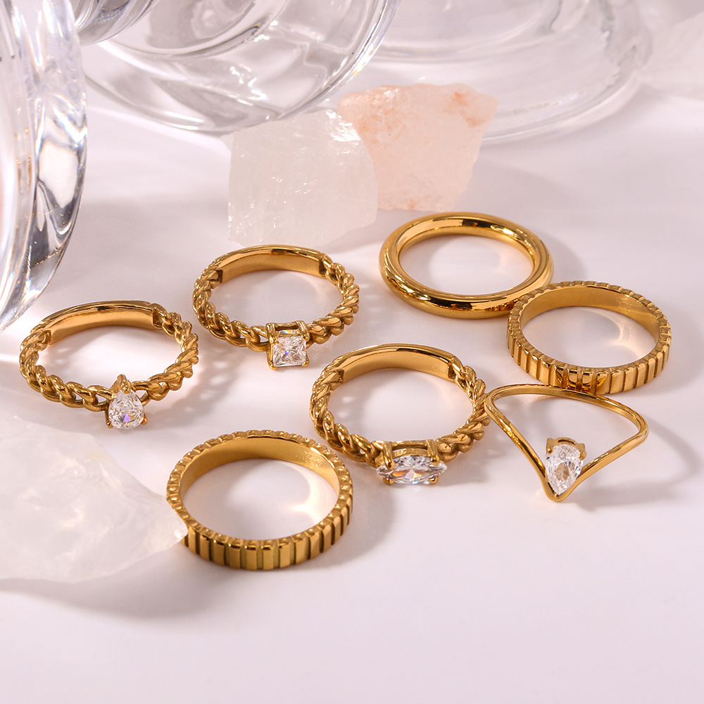 Bague en acier inoxydable zircons cubiques, Acier inoxydable 304, Plaqué or 18K, styles différents pour le choix & pavé de micro zircon & pour femme, Vendu par PC