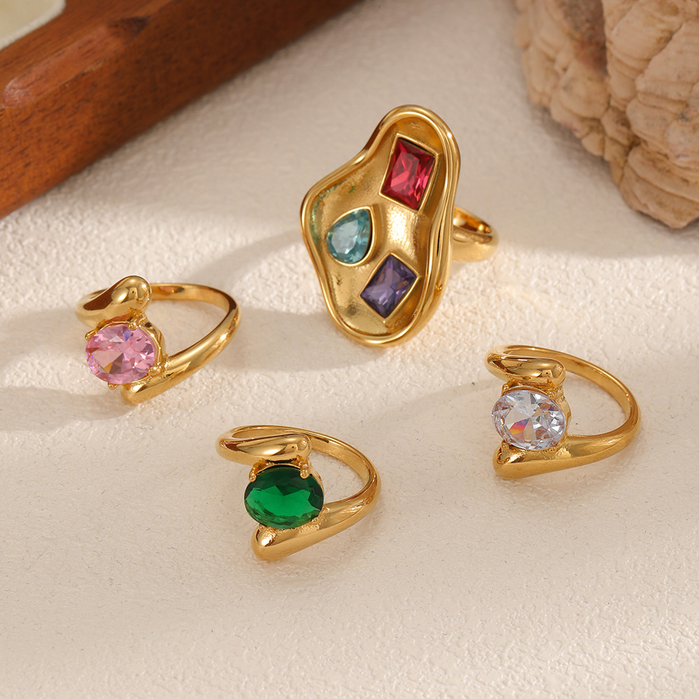Bague en acier inoxydable zircons cubiques, Acier inoxydable 304, Pain, Placage, bijoux de mode & pavé de micro zircon, plus de couleurs à choisir, Vendu par PC