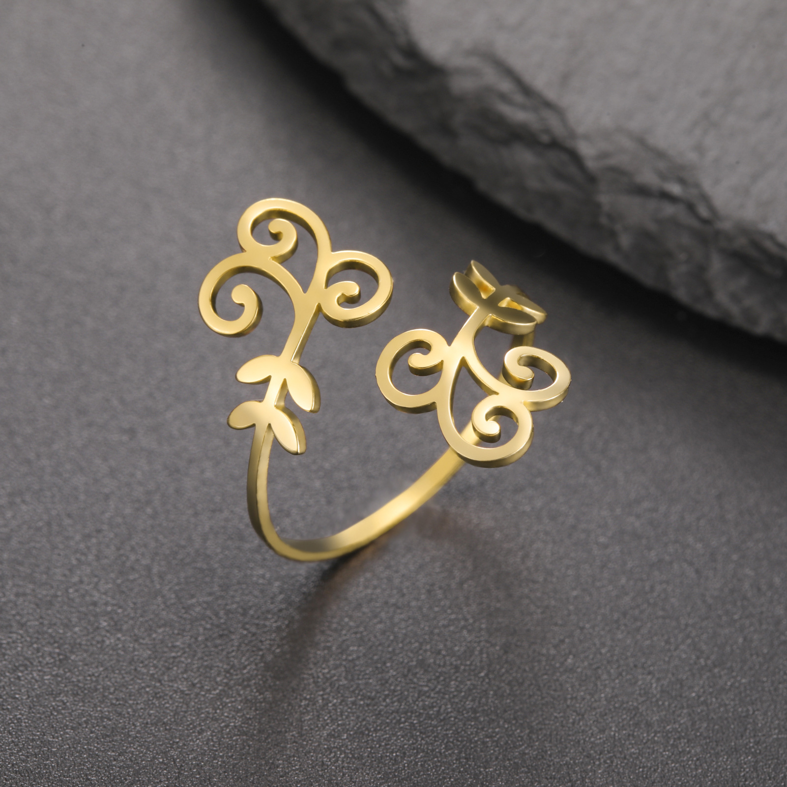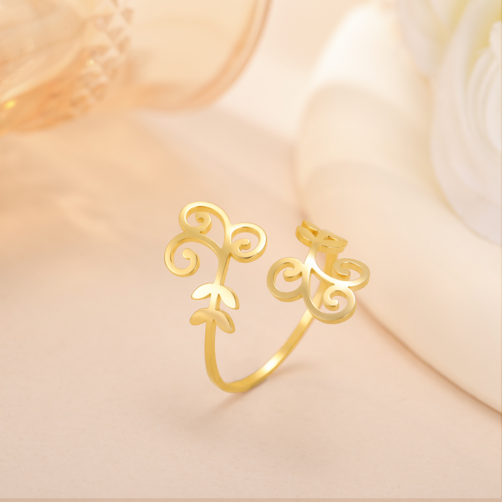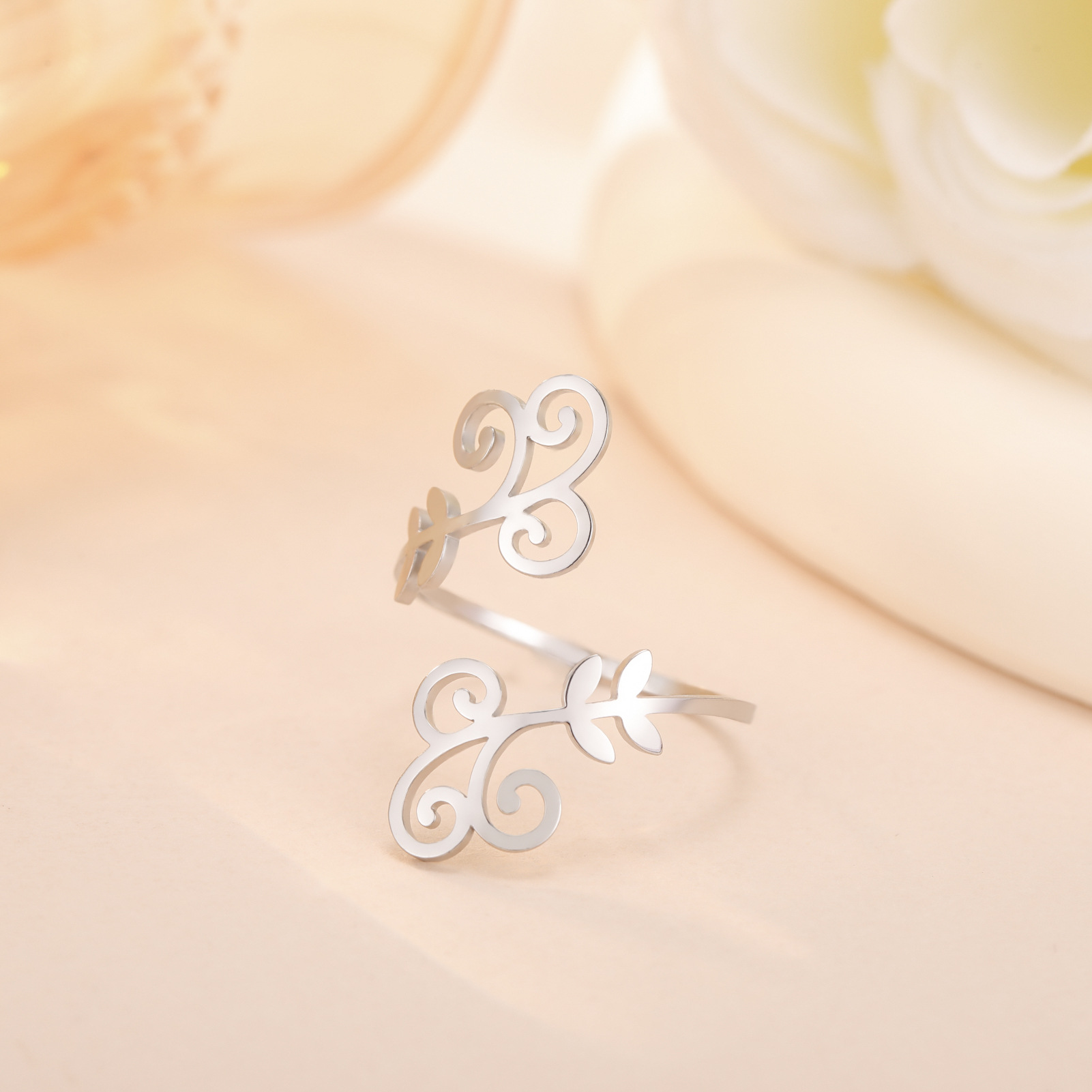 Bague en acier inoxydable, Acier inoxydable 304, feuille, Placage, pour femme, plus de couleurs à choisir, inner diameter:17~20mm, Vendu par PC