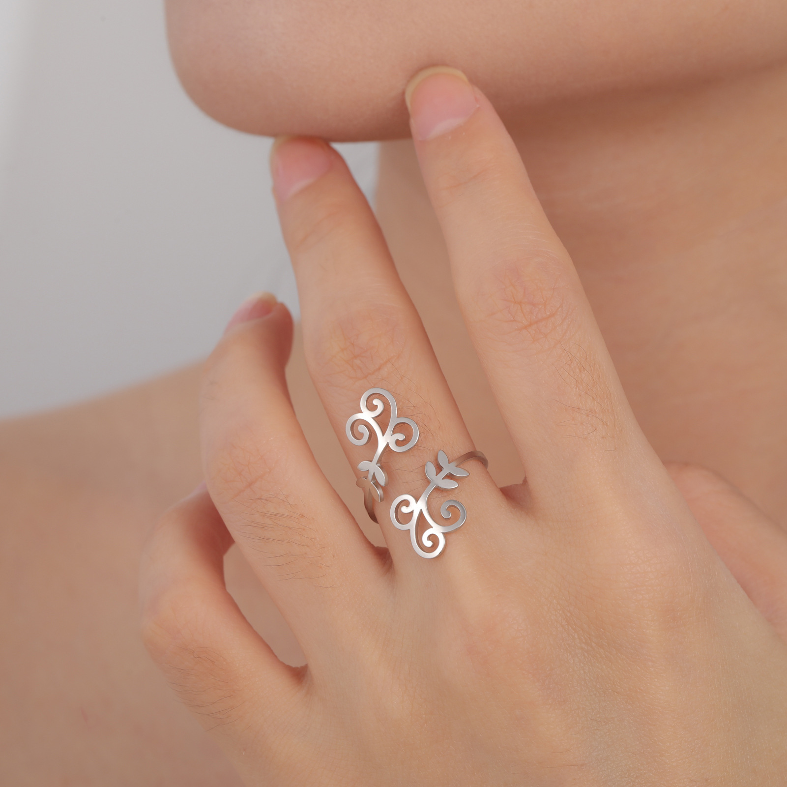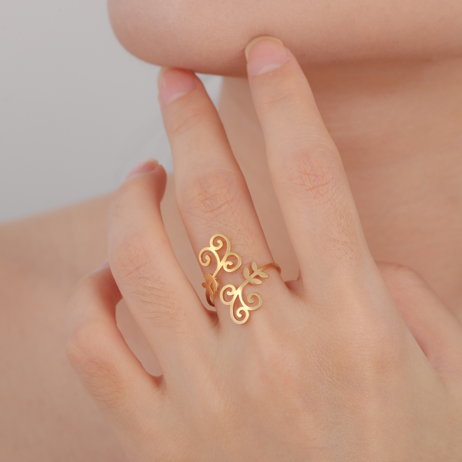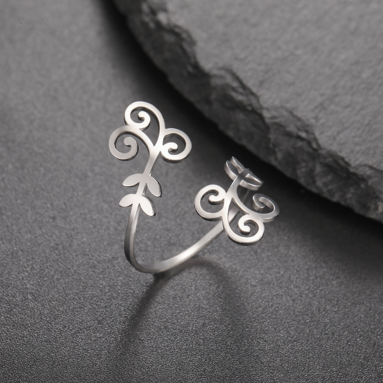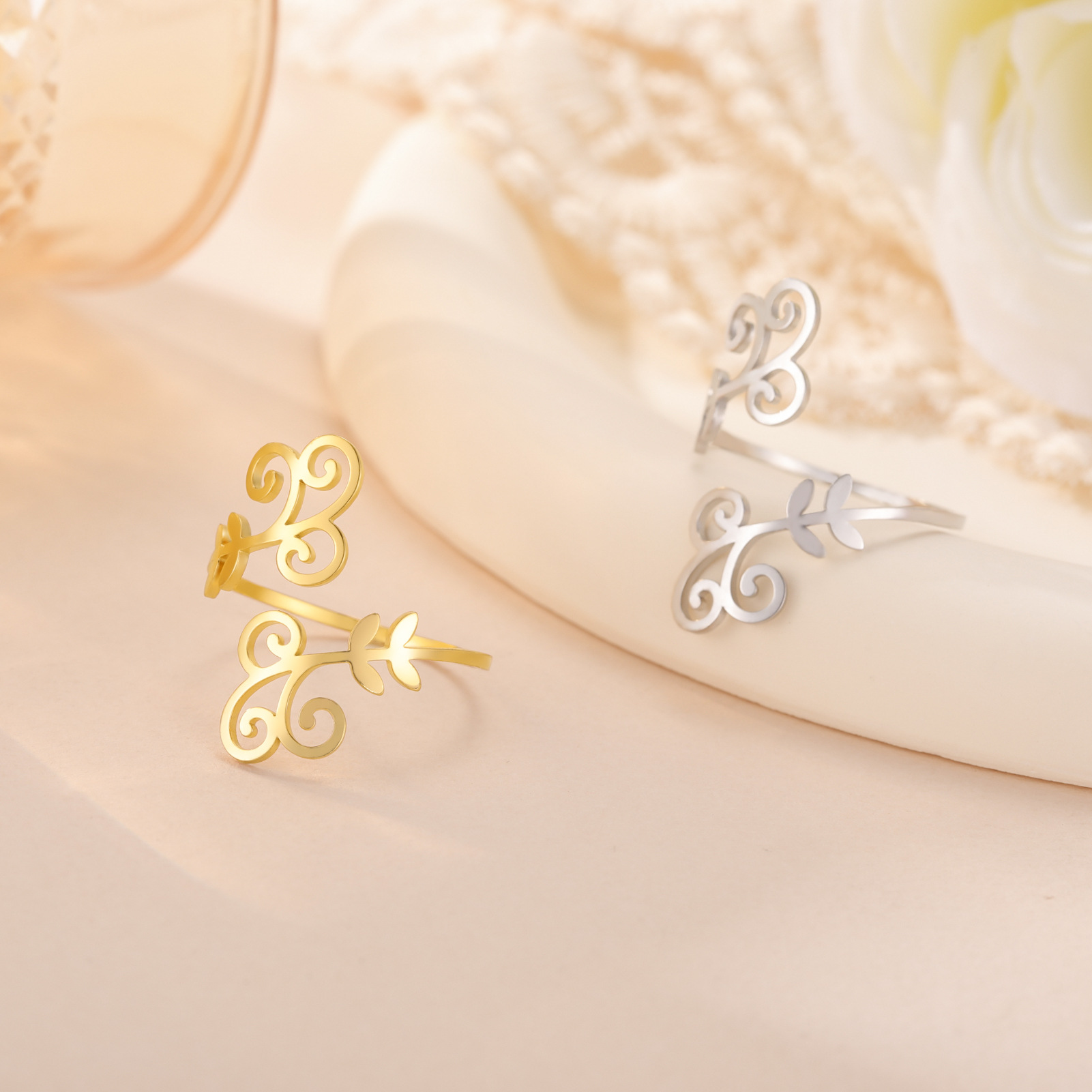Bague en acier inoxydable, Acier inoxydable 304, feuille, Placage, pour femme, plus de couleurs à choisir, inner diameter:17~20mm, Vendu par PC