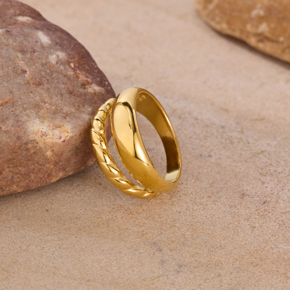 Bague en acier inoxydable, Acier inoxydable 304, Placage, Double couche & normes différentes pour le choix & pour femme, doré, Vendu par PC