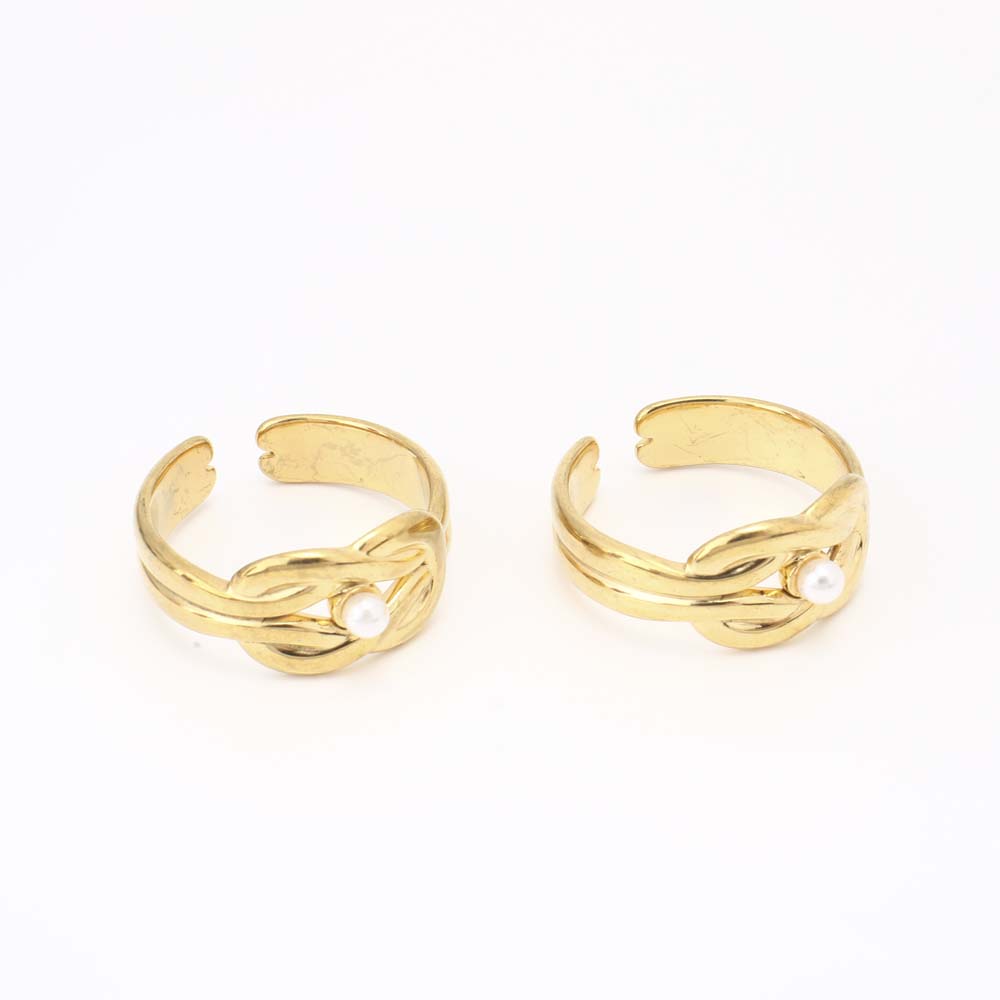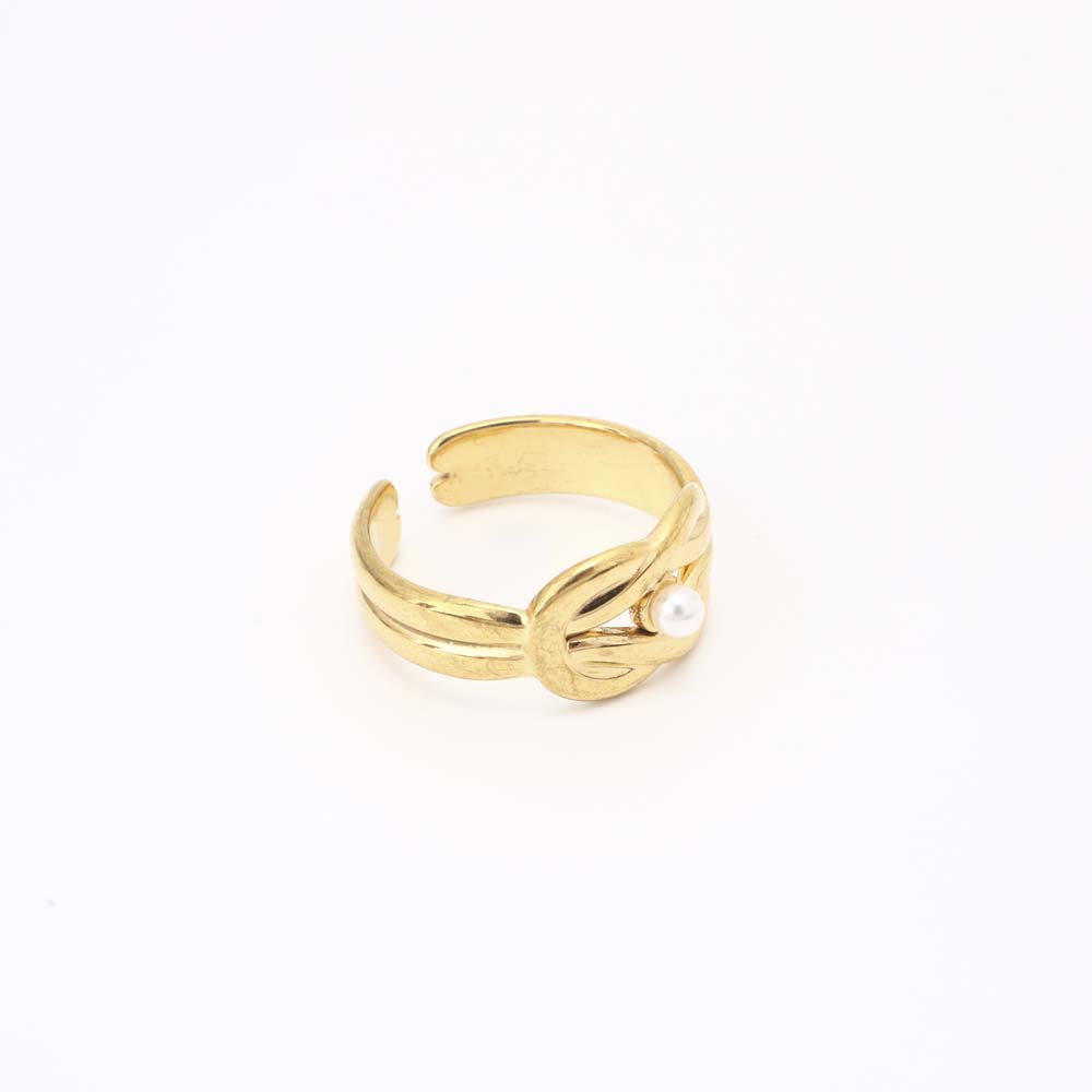 Bague en acier inoxydable, Acier inoxydable 304, avec perle de plastique, bijoux de mode & pour femme, doré, Inner diameter: 17mm, Vendu par PC