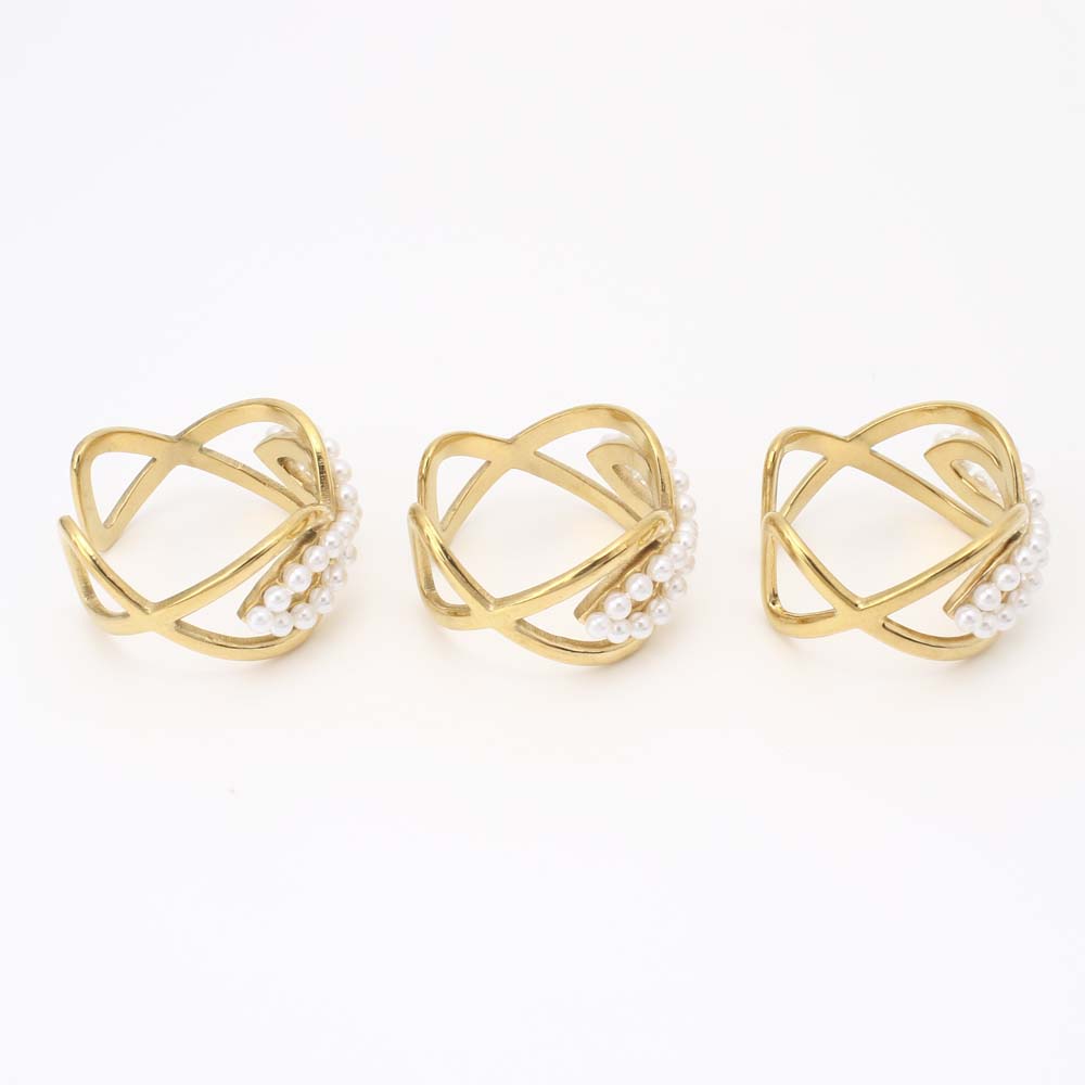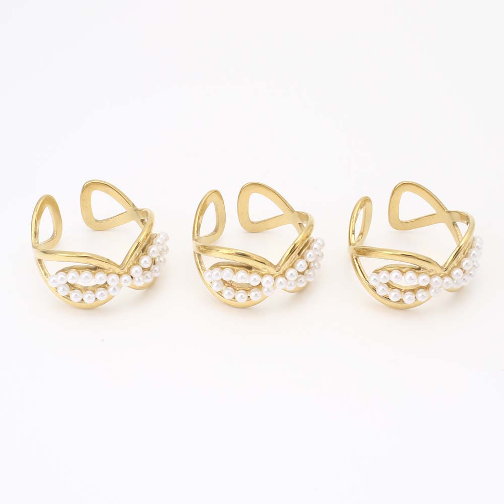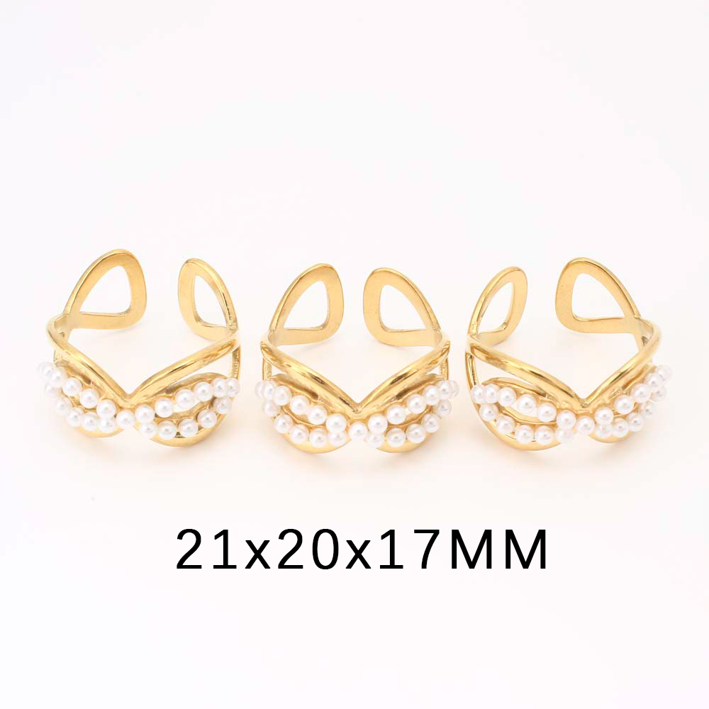 Bague en acier inoxydable, Acier inoxydable 304, avec perle de plastique, bijoux de mode & pour femme, doré, Inner diameter: 18mm, Vendu par PC