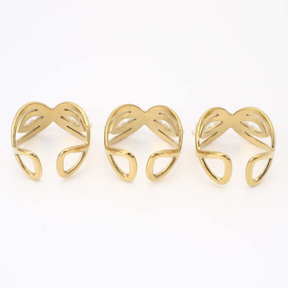 Bague en acier inoxydable, Acier inoxydable 304, avec perle de plastique, Placage de couleur d'or, bijoux de mode & styles différents pour le choix & pour femme, Vendu par PC