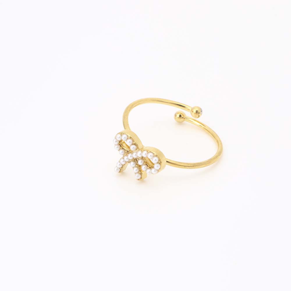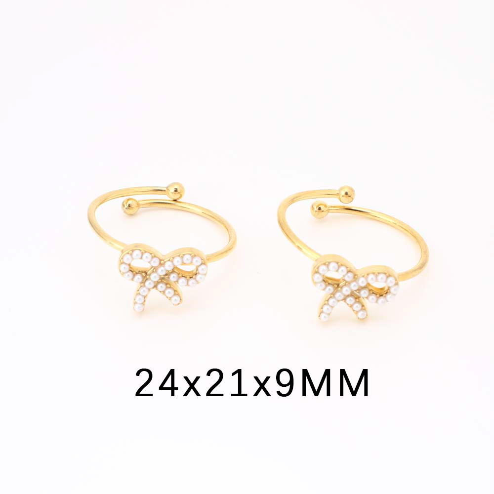 Bague en acier inoxydable, Acier inoxydable 304, avec perle de plastique, Placage de couleur d'or, bijoux de mode & styles différents pour le choix & pour femme, Vendu par PC
