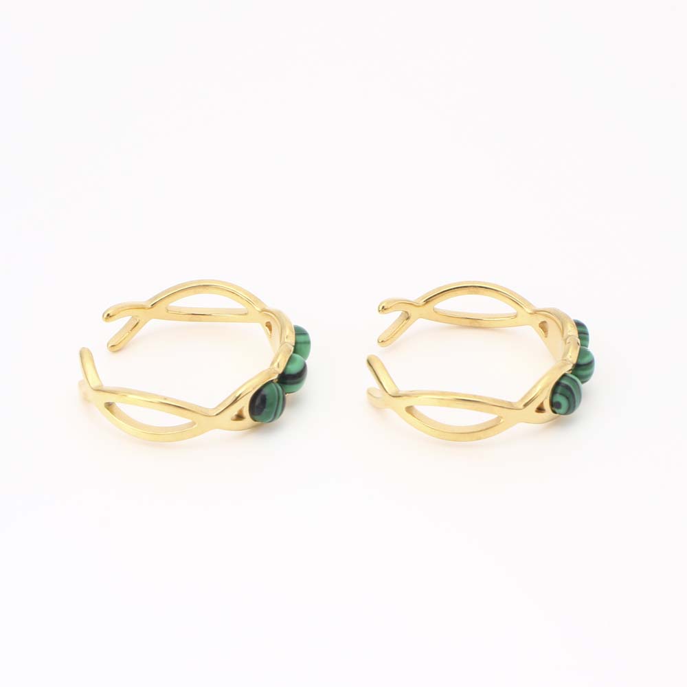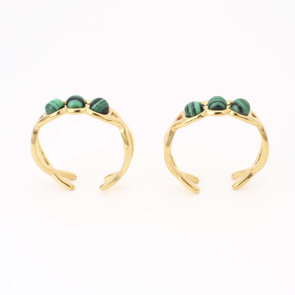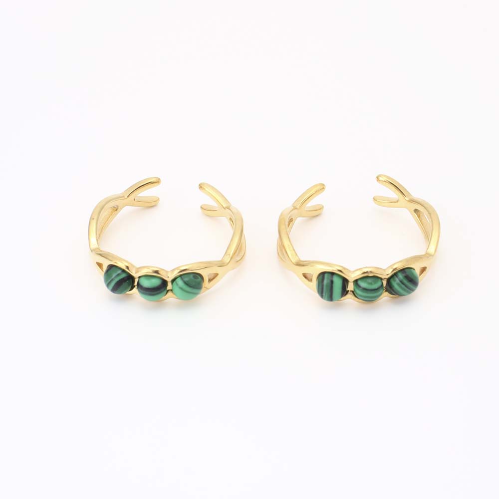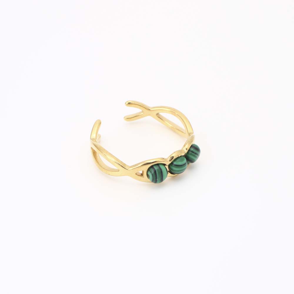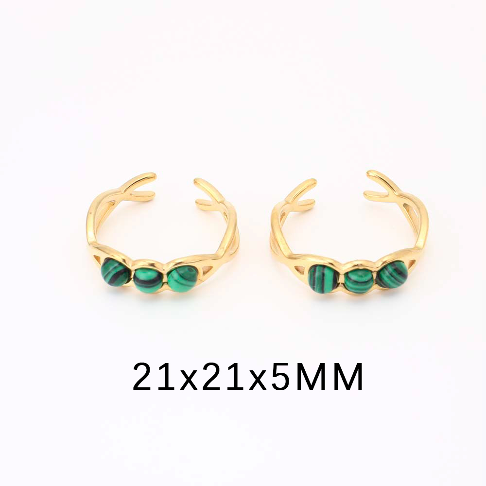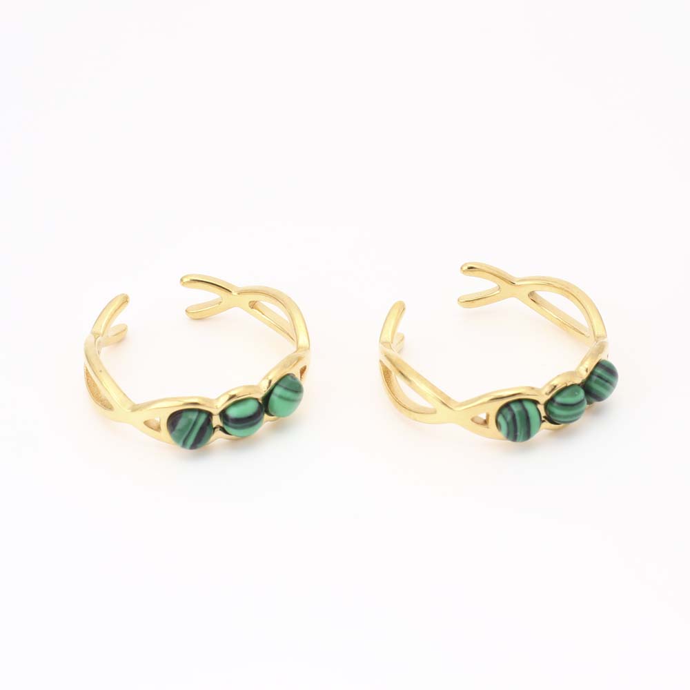 Bague en acier inoxydable, Acier inoxydable 304, avec Synthétique-Malachite, bijoux de mode & pour femme, doré, Inner diameter: 19mm, Vendu par PC