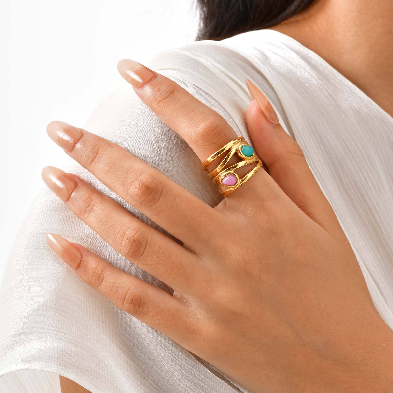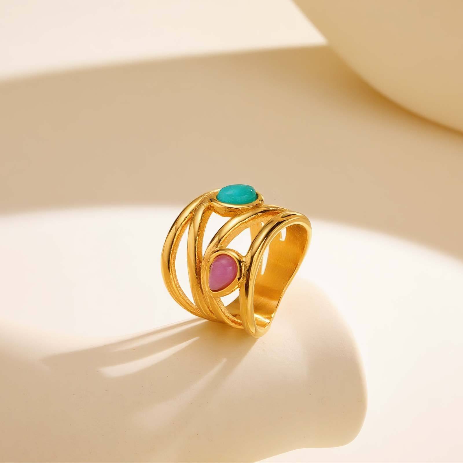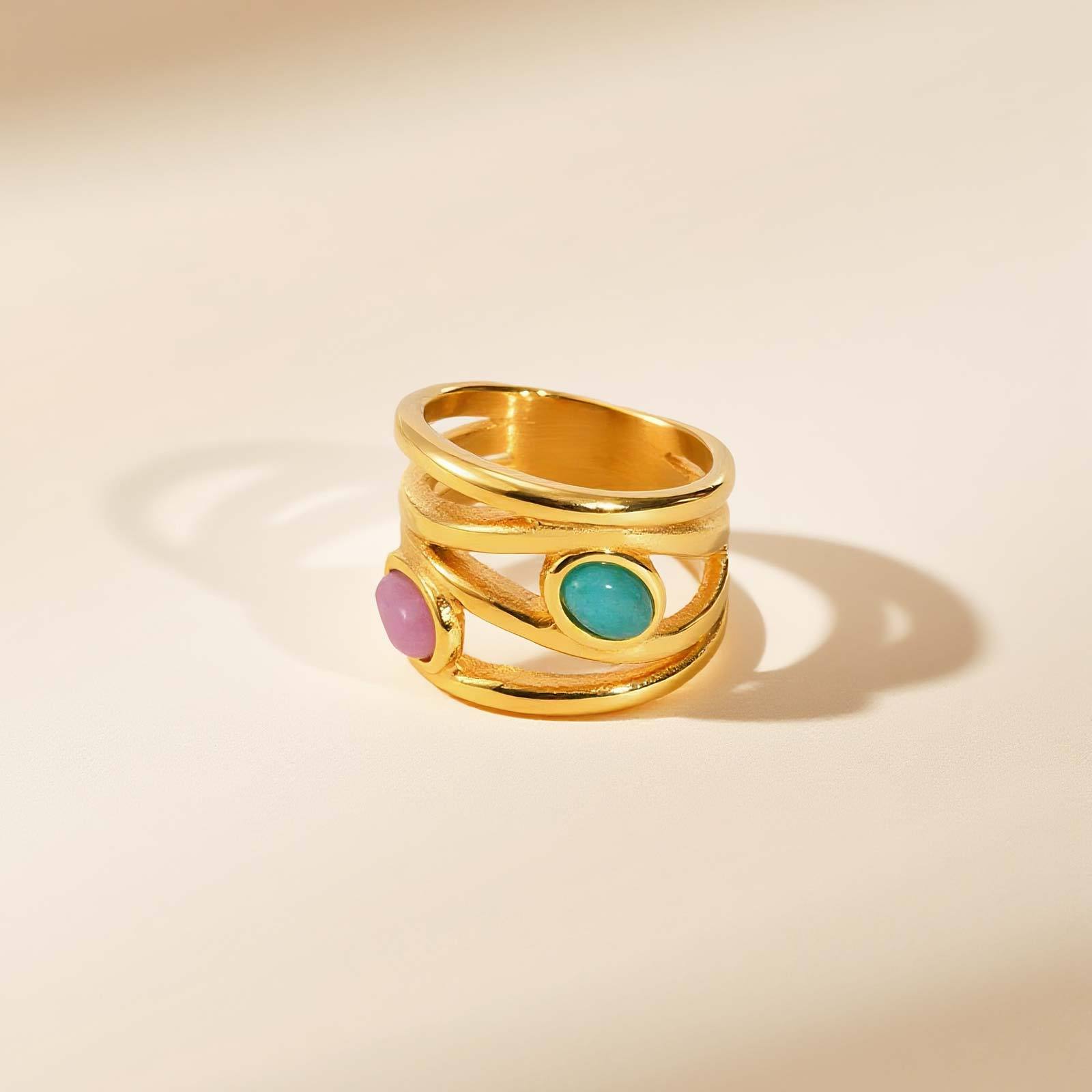 Bague en acier inoxydable, Acier inoxydable 304, avec Amazonite & Cristal naturel, Placage, multicouche & normes différentes pour le choix & pour femme, doré, Vendu par PC