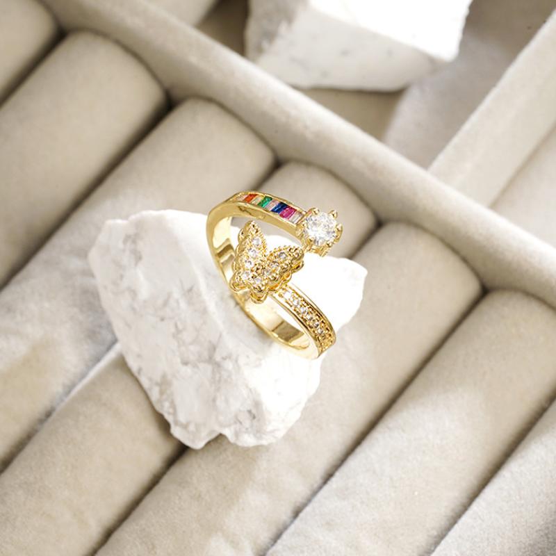 Bague en laiton, Plaqué or 18K, bijoux de mode & pavé de micro zircon & pour femme, Inner diameter :18mm, Vendu par PC
