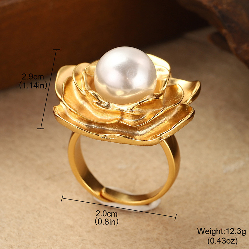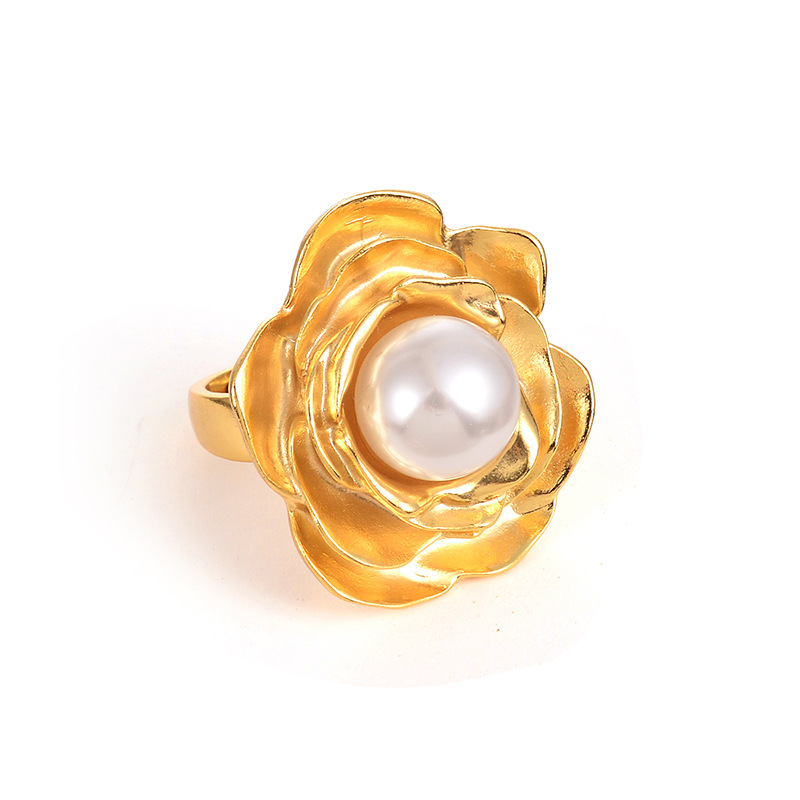 Bague en laiton, avec perle de plastique, fleur, Placage, différents matériaux pour le choix & styles différents pour le choix & pour femme, doré, Vendu par PC