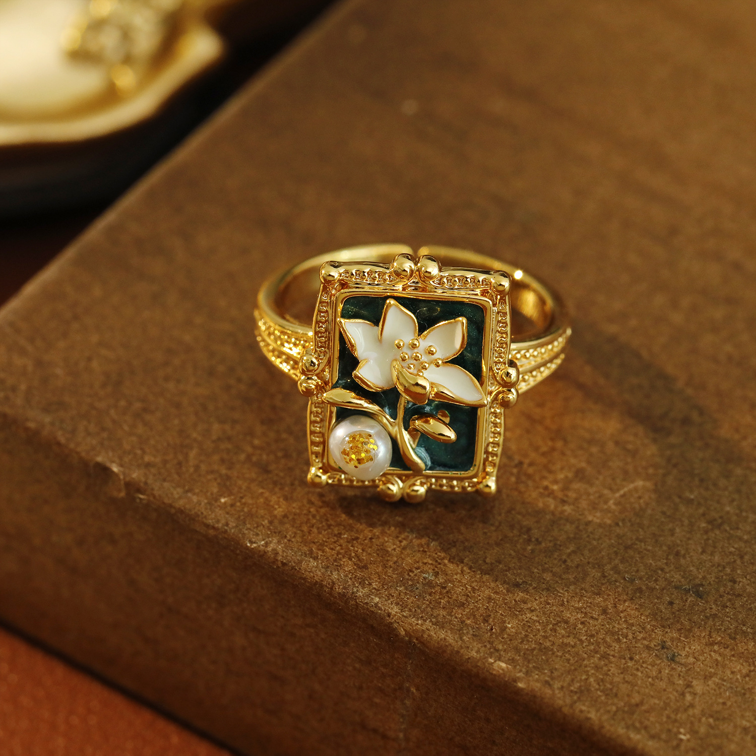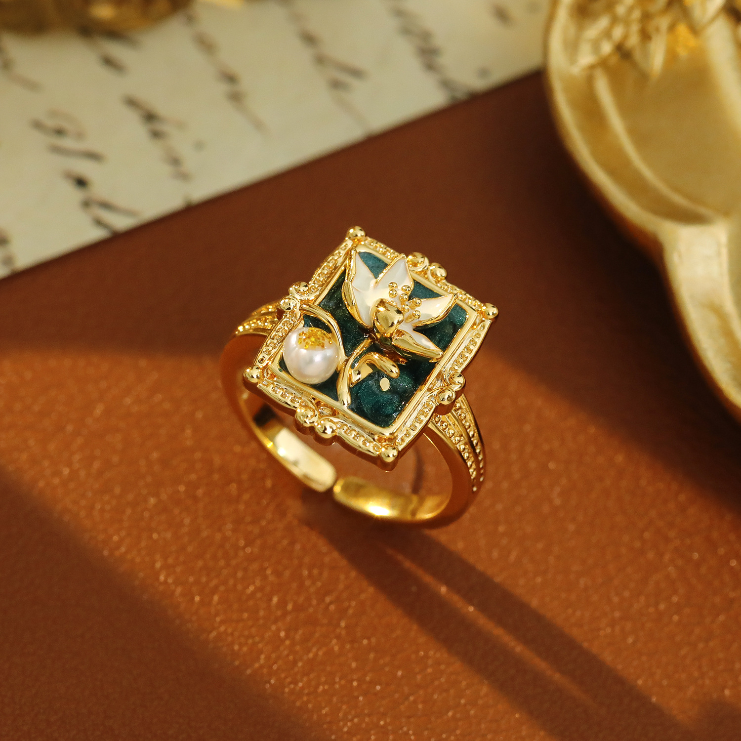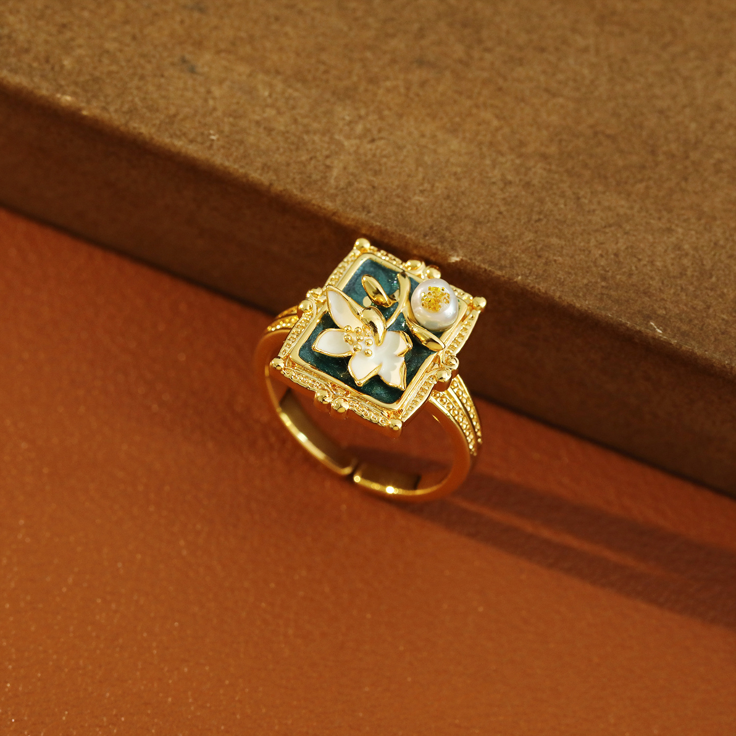 Bague perle d'eau douce, laiton, avec perle d'eau douce cultivée, Plaqué or 18K, bijoux de mode & pour femme & émail, The inner diameter of the open ring is 17mm and cannot be adjusted, Vendu par PC