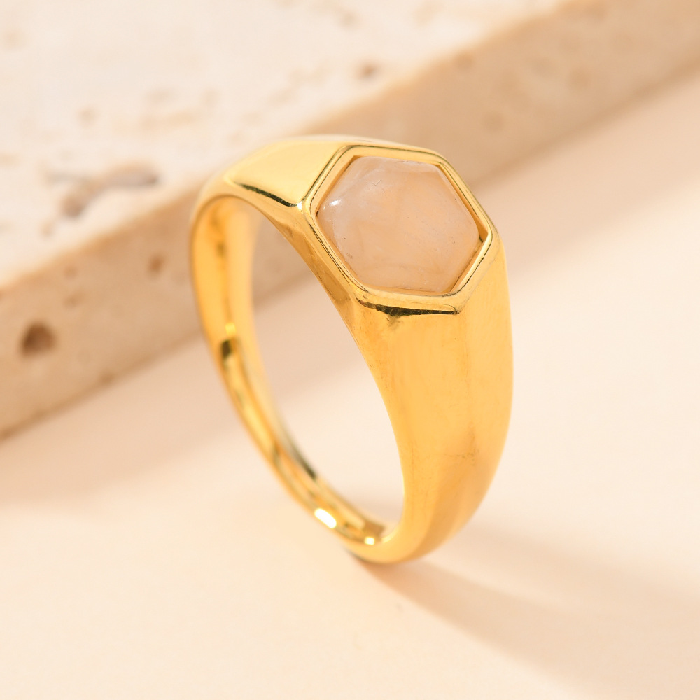 Bague pierre précieuse, Acier inoxydable 304, avec Pierre naturelle, Placage de couleur d'or, différents matériaux pour le choix & unisexe & normes différentes pour le choix, plus de couleurs à choisir, Vendu par PC