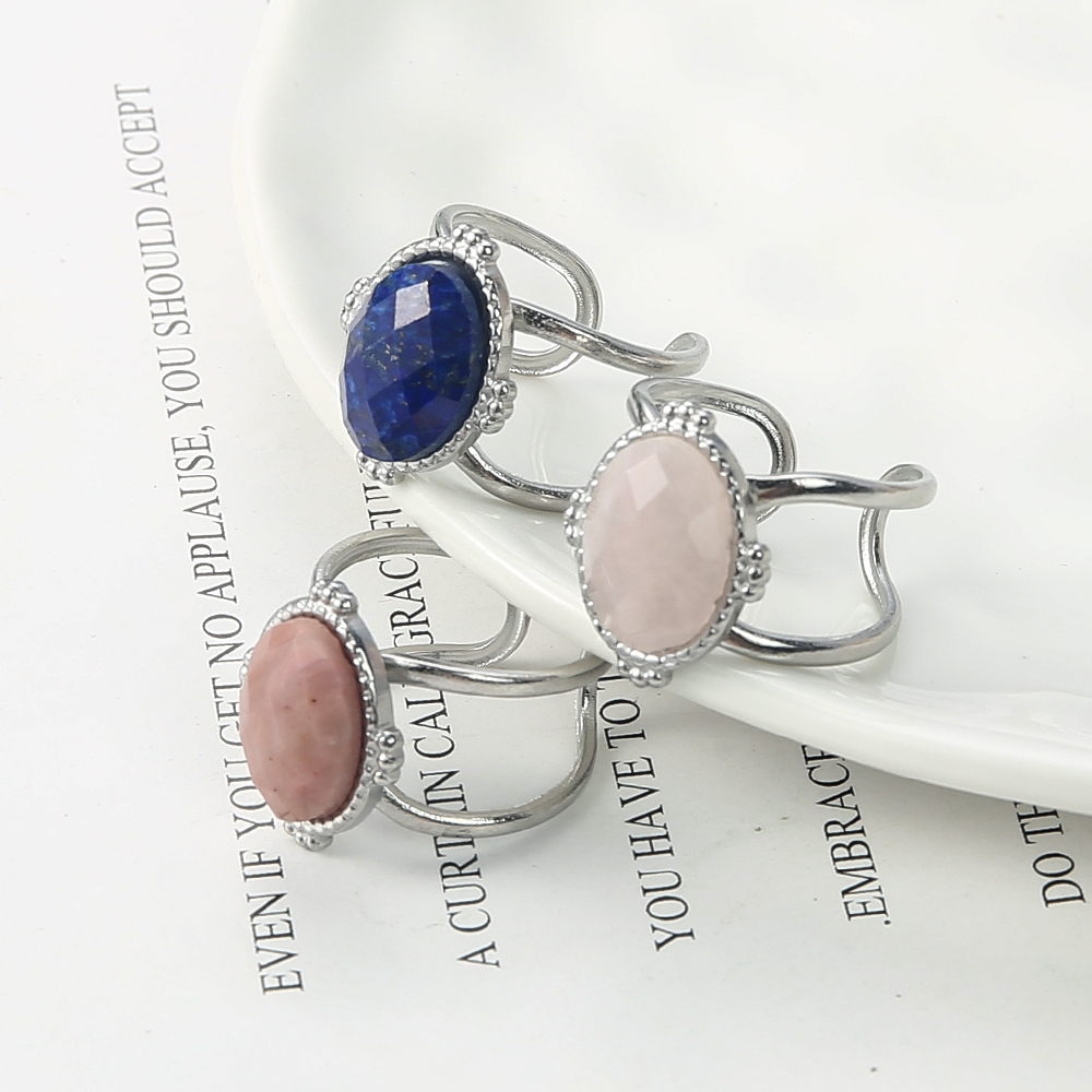 Bague pierre précieuse, alliage de zinc, avec pierre gemme, Placage de couleur argentée, bijoux de mode, plus de couleurs à choisir, 21.52x13.16x26.88mm, Vendu par PC