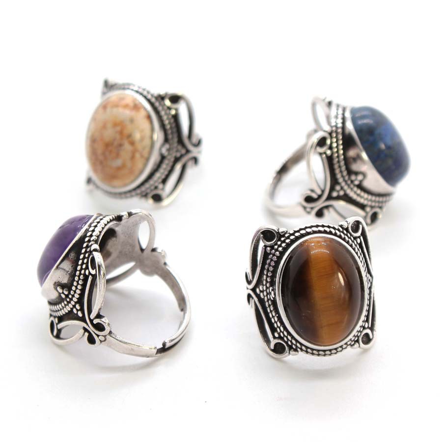Bague pierre précieuse, alliage de zinc, avec pierre gemme, Placage de couleur argentée, bijoux de mode, plus de couleurs à choisir, 21x20mm, Vendu par PC