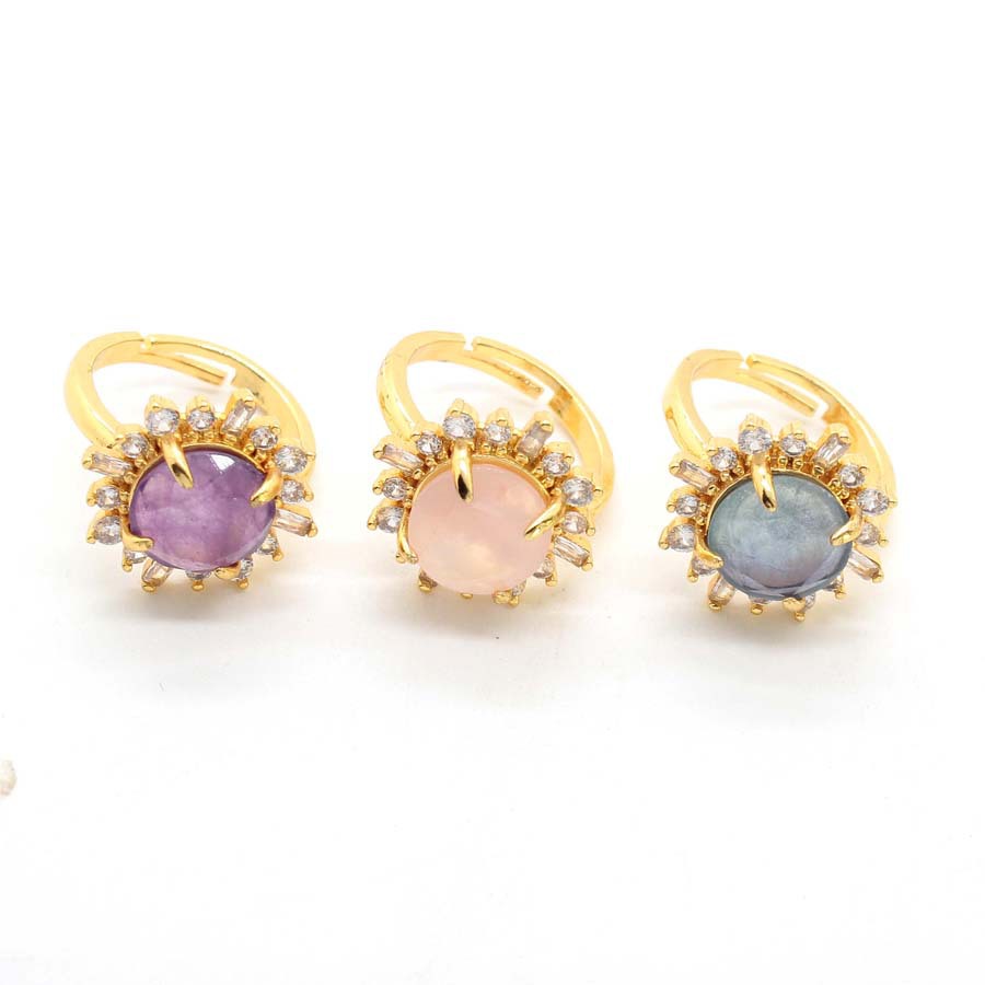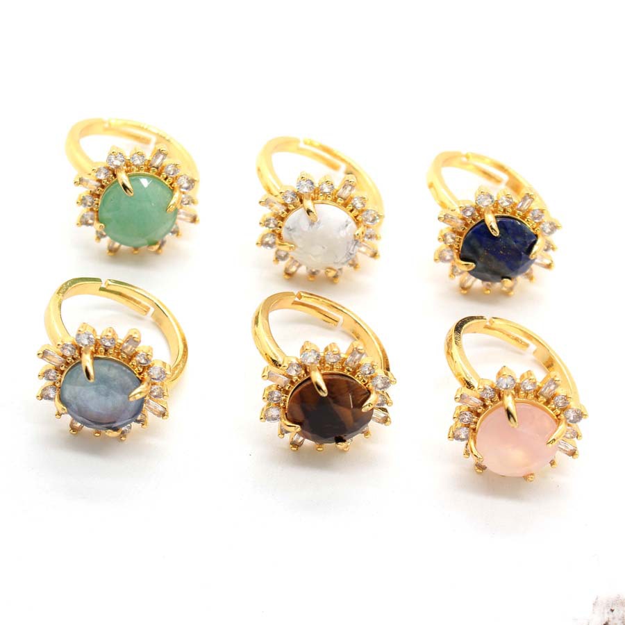Bague pierre précieuse, alliage de zinc, avec pierre gemme, Placage de couleur d'or, bijoux de mode & avec strass, plus de couleurs à choisir, 19x19mm, Vendu par PC