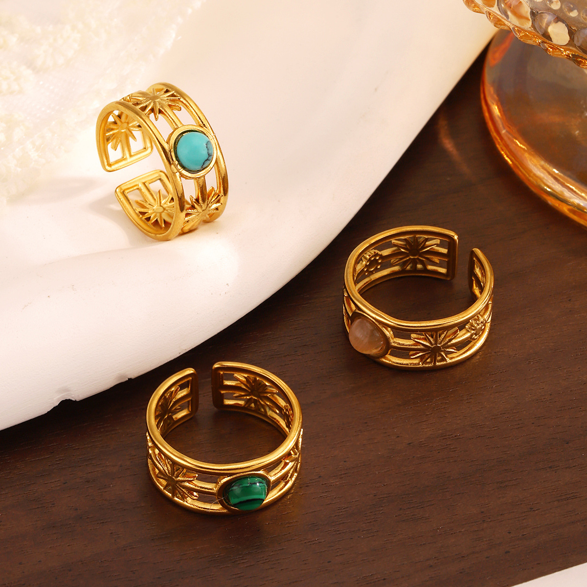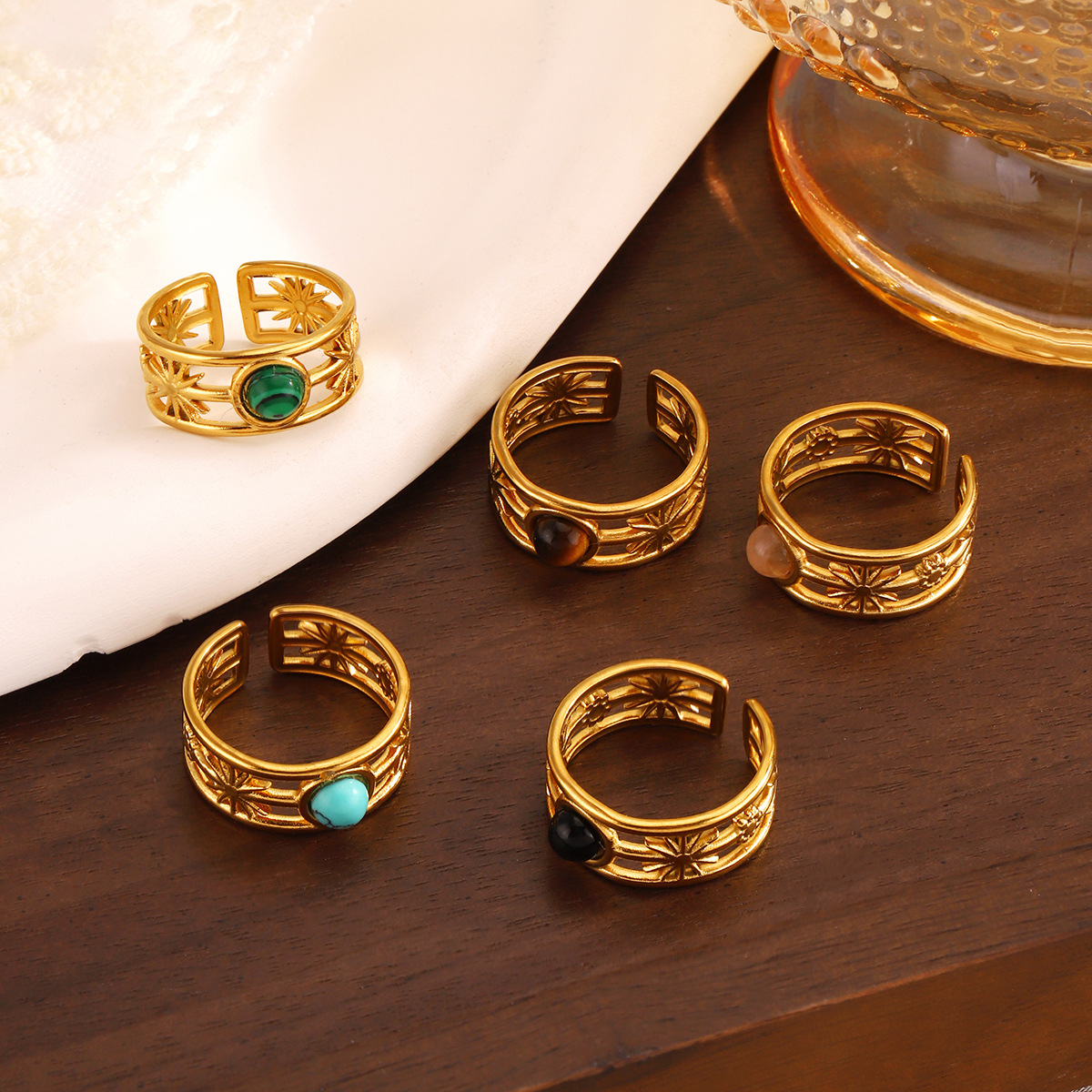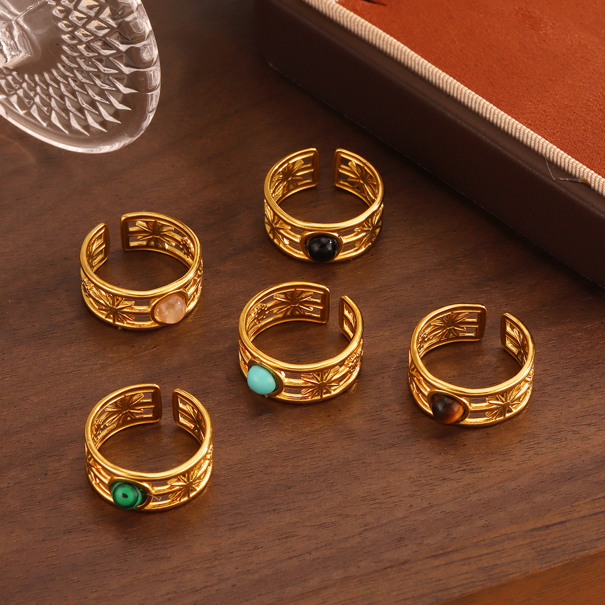 Bague pierre précieuse, Acier inoxydable 304, avec Pierre naturelle, Placage, différents matériaux pour le choix & pour femme & creux, doré, Vendu par PC