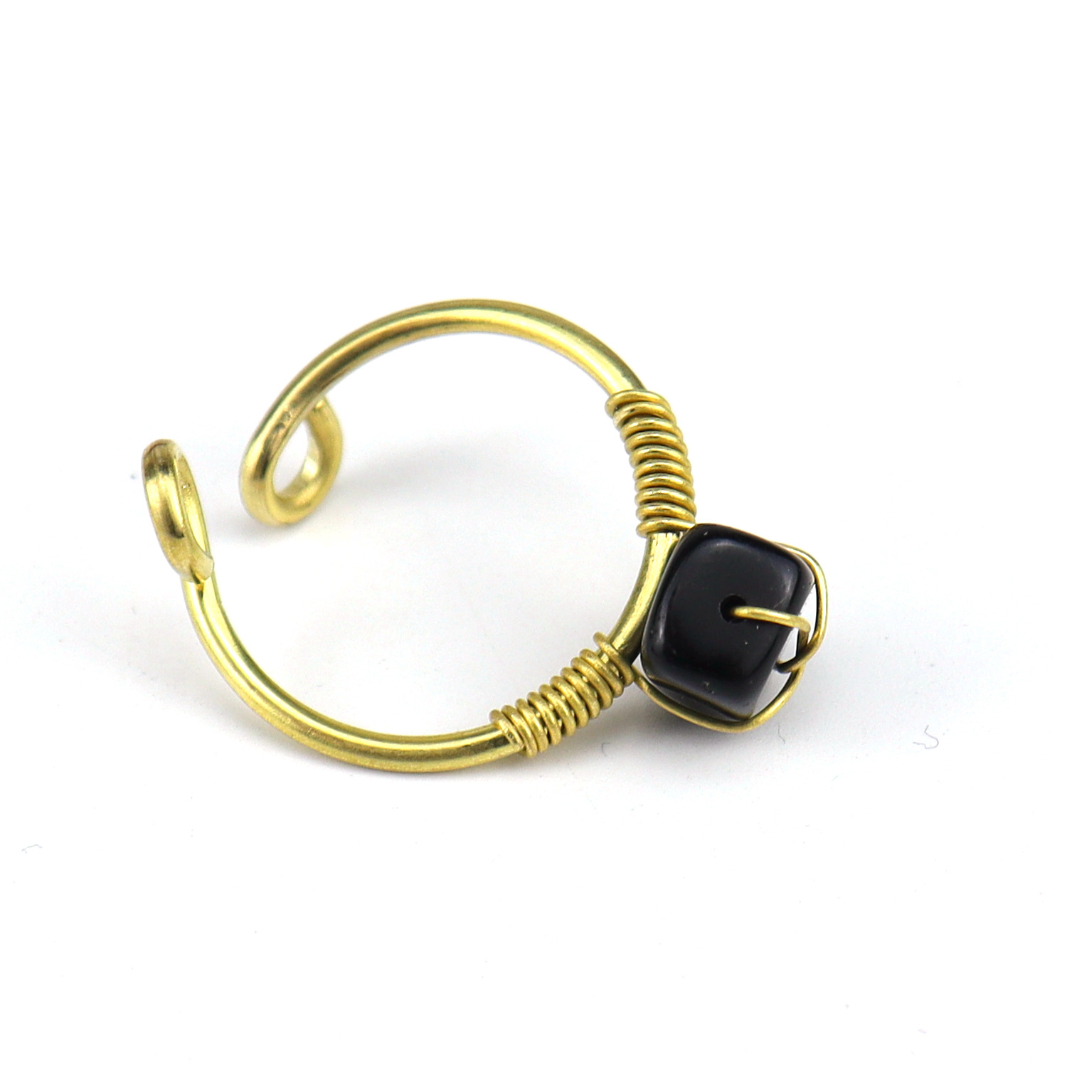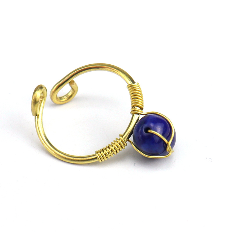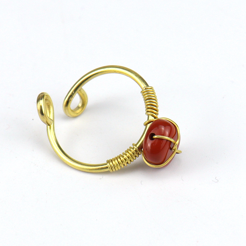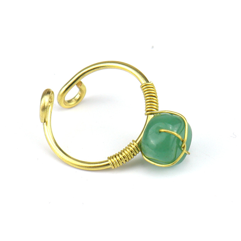 Bague pierre précieuse, pierre gemme, avec fil en laiton & laiton, fait à la main, bijoux de mode & différents matériaux pour le choix & pour femme, Or, Vendu par PC